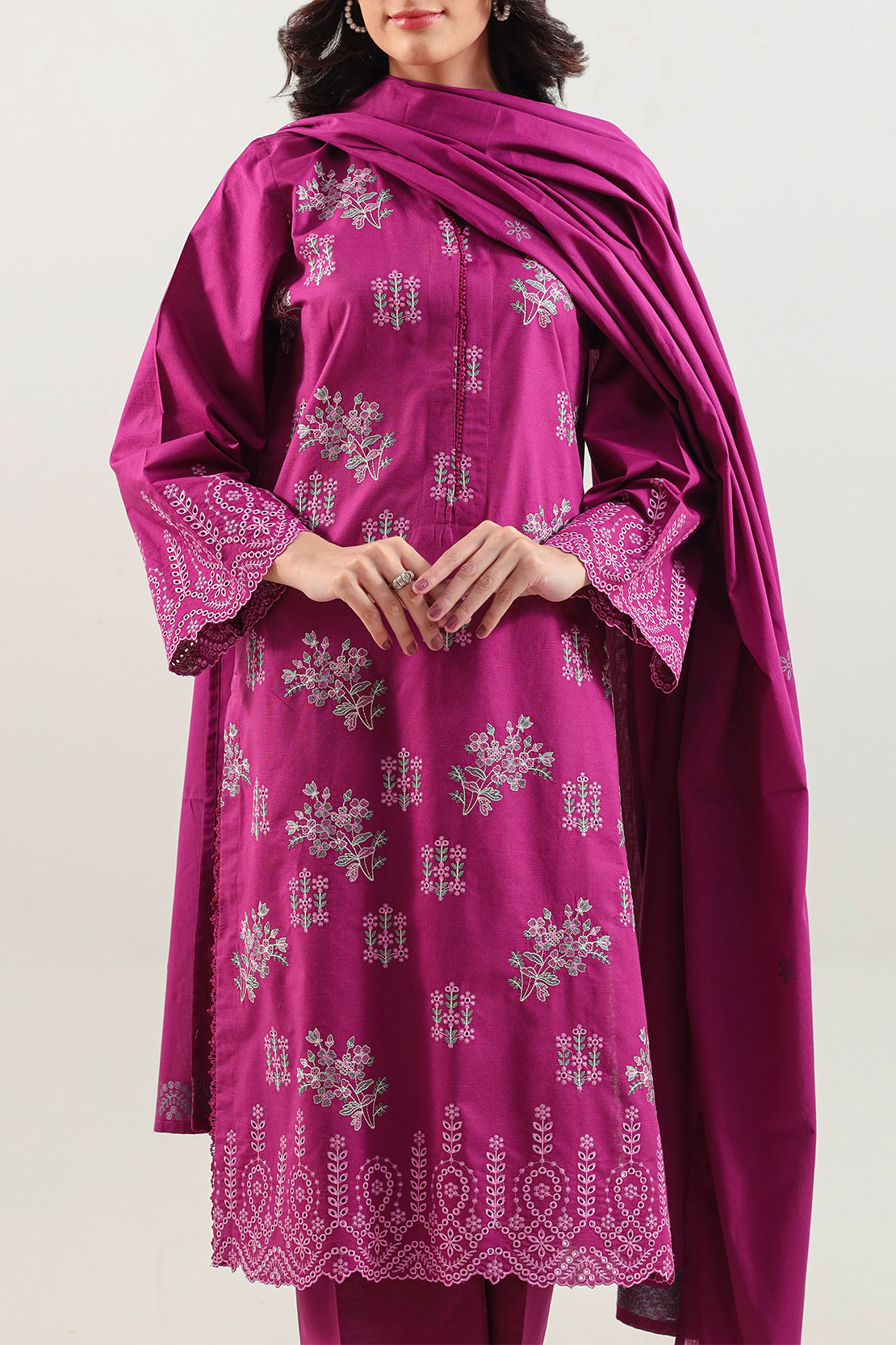 Embroidered Cotton Jacquard Stitched 3 Piece