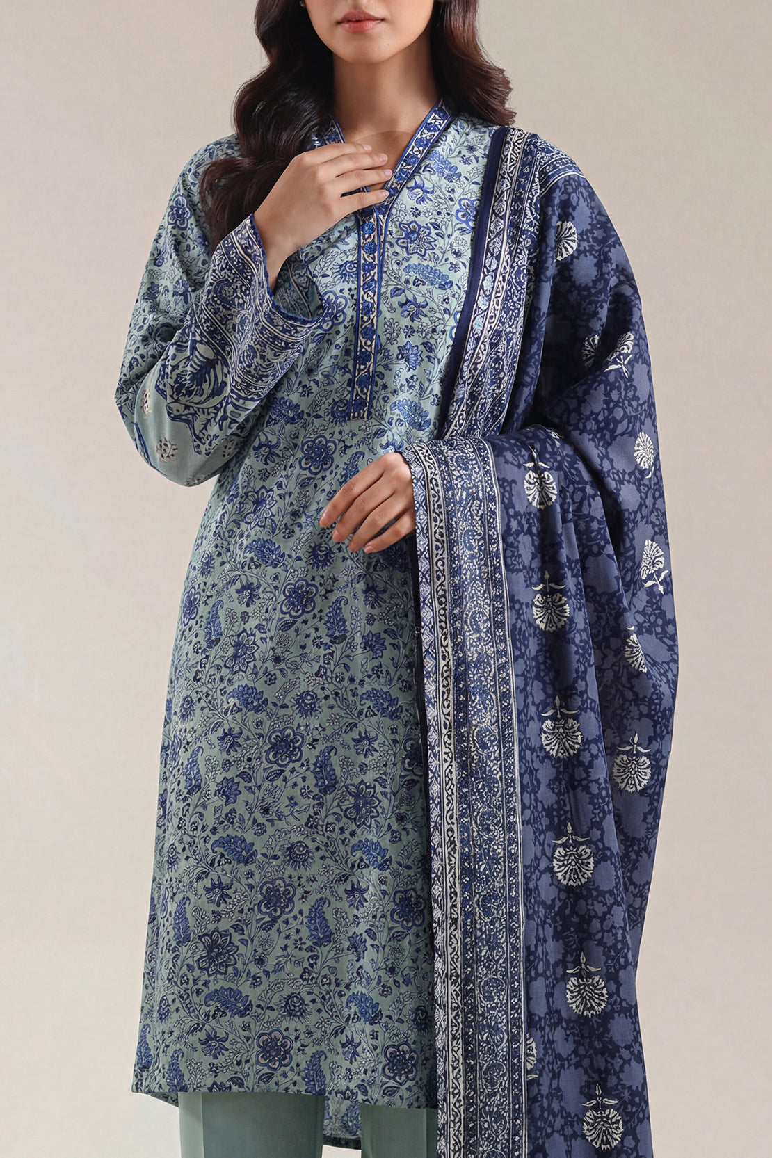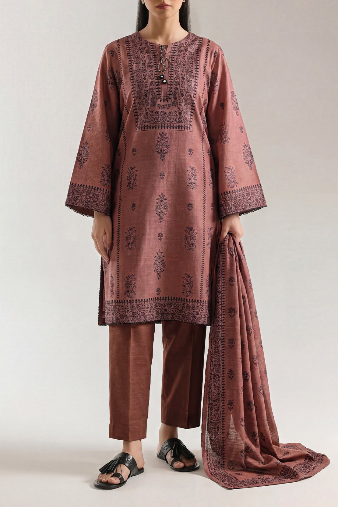 Printed Khaddar Stitched 3 Piece