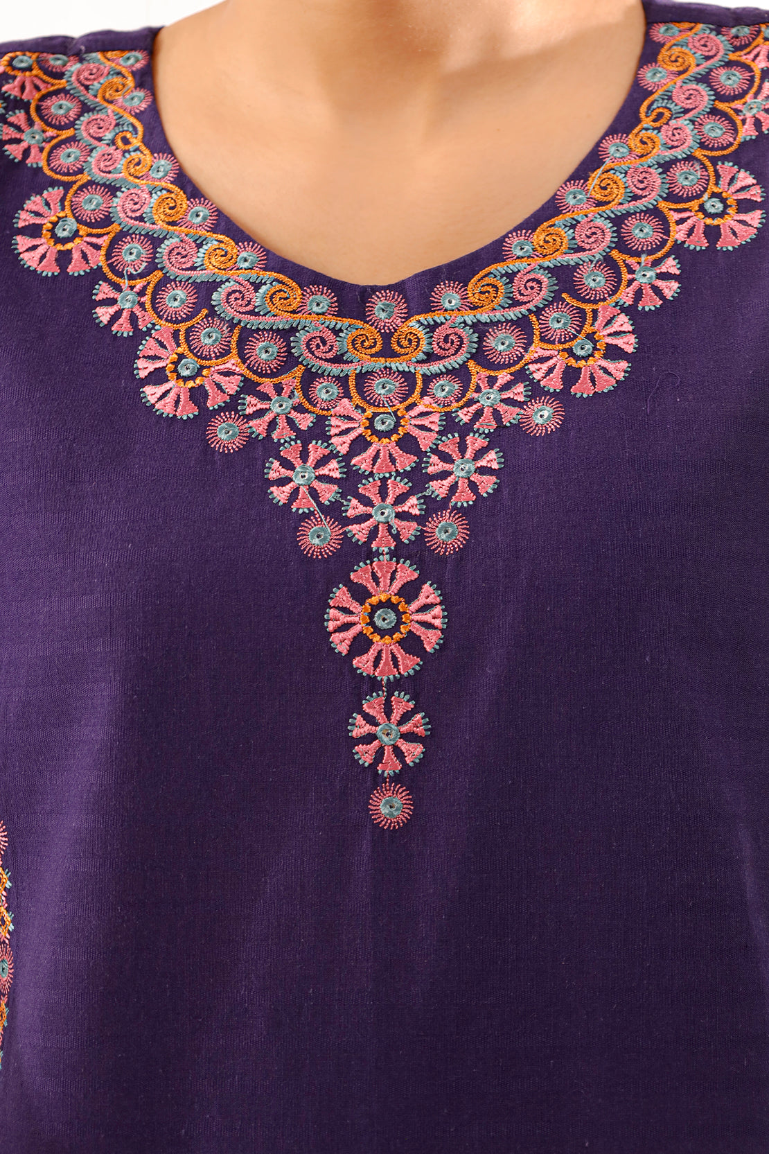 Solid Embroidered Cotton Viscose Stitched 3 Piece