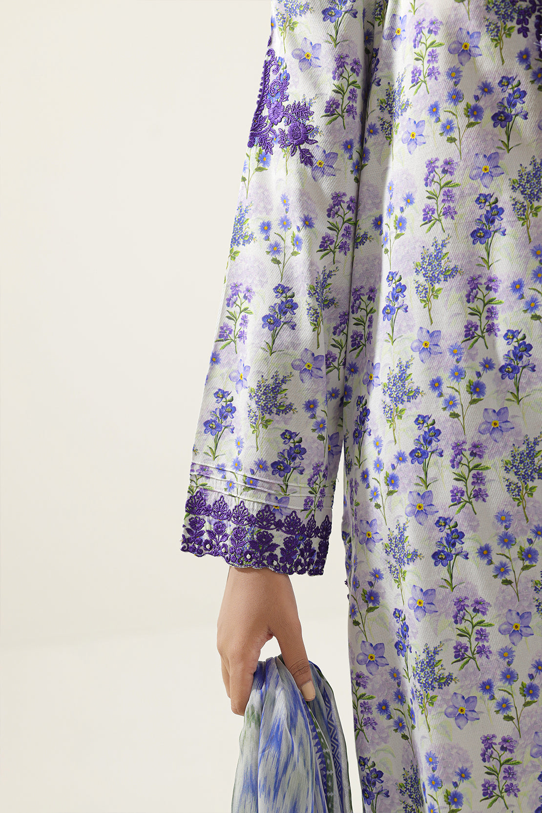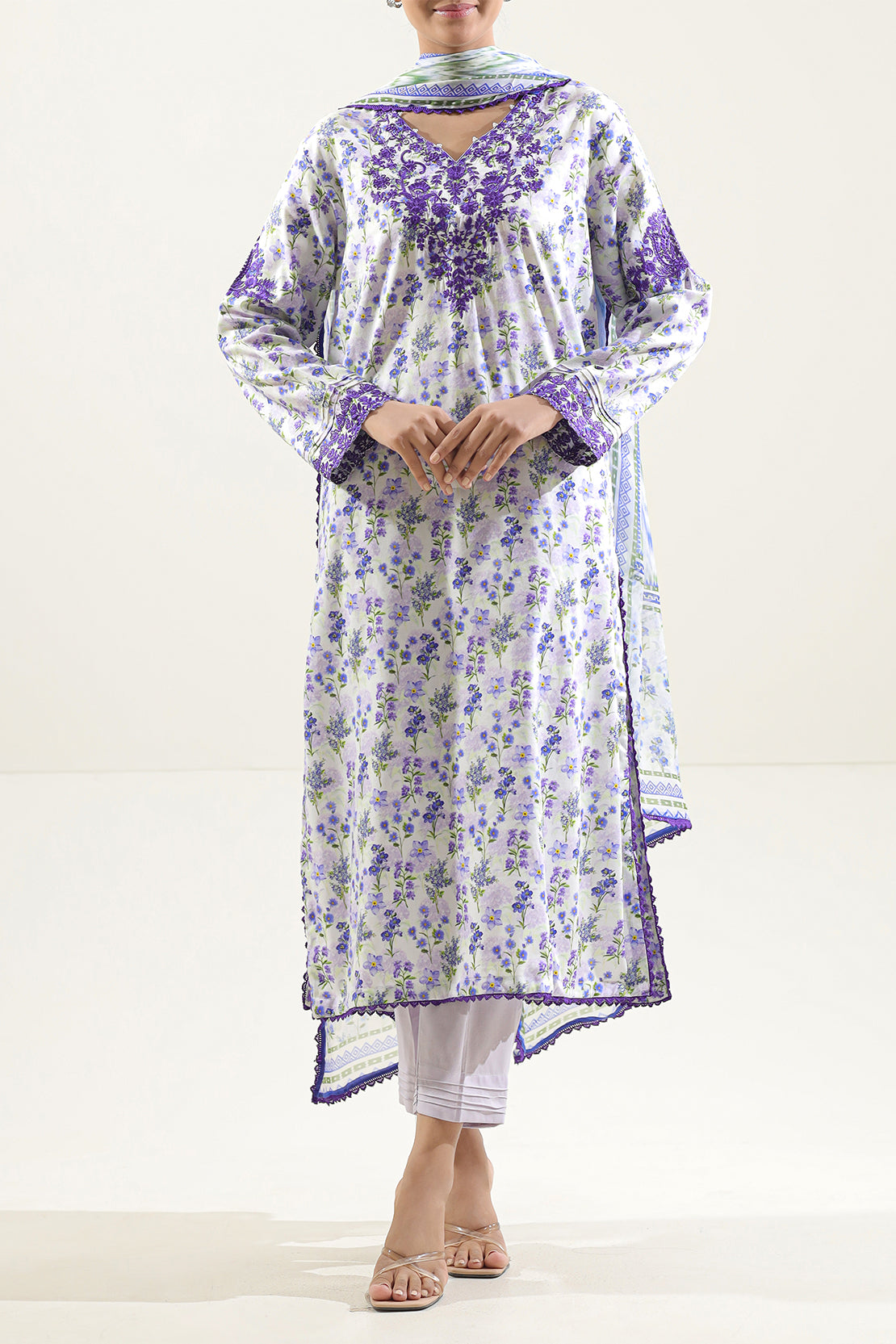 Printed Embroidered Viscose Twill Stitched 3 Piece With (Chiffon Dupatta)