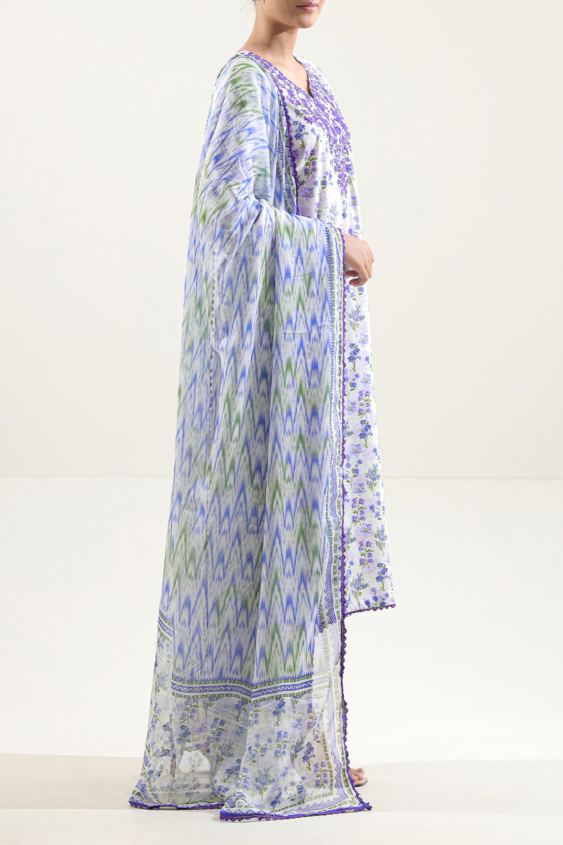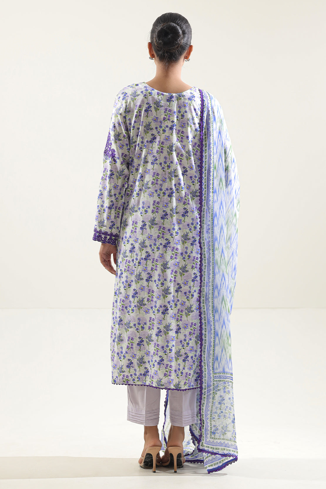 Printed Embroidered Cotton Jacquard Stitched 3 Piece