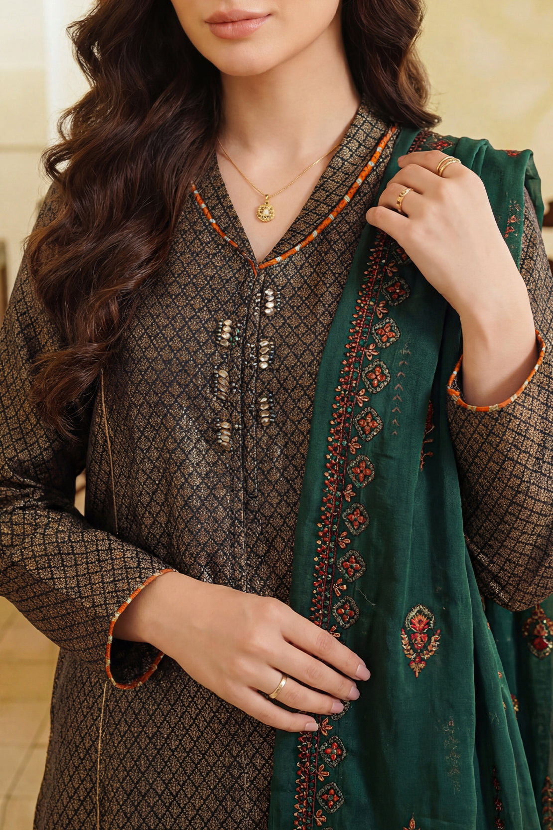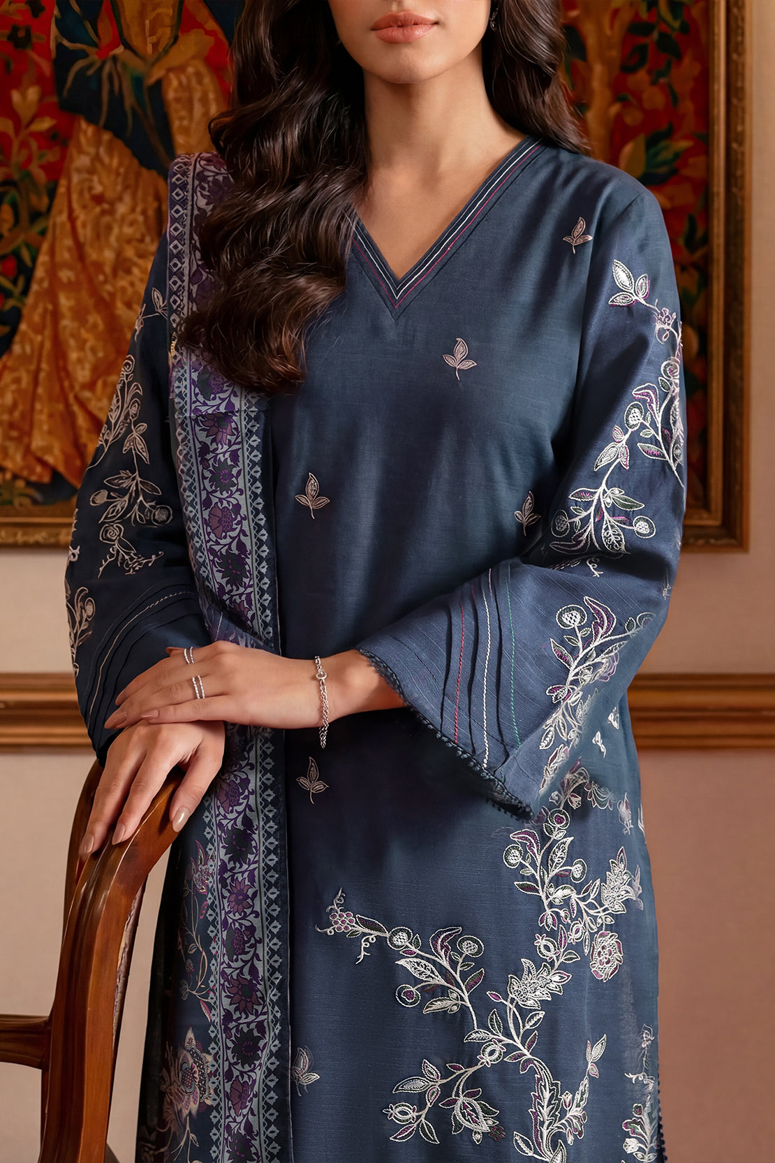 Luxury Pret Embroidered Pashmina Stitched 3 Piece