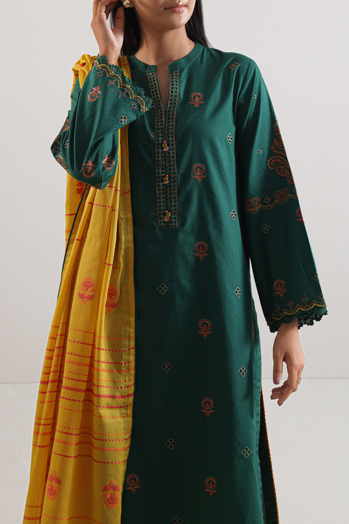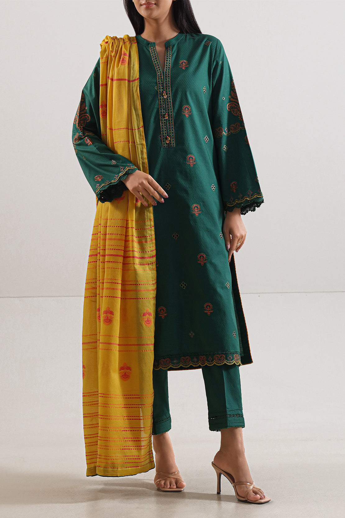 Luxury Pret Embroidered Cotton Jacquard Stitched 3 Piece