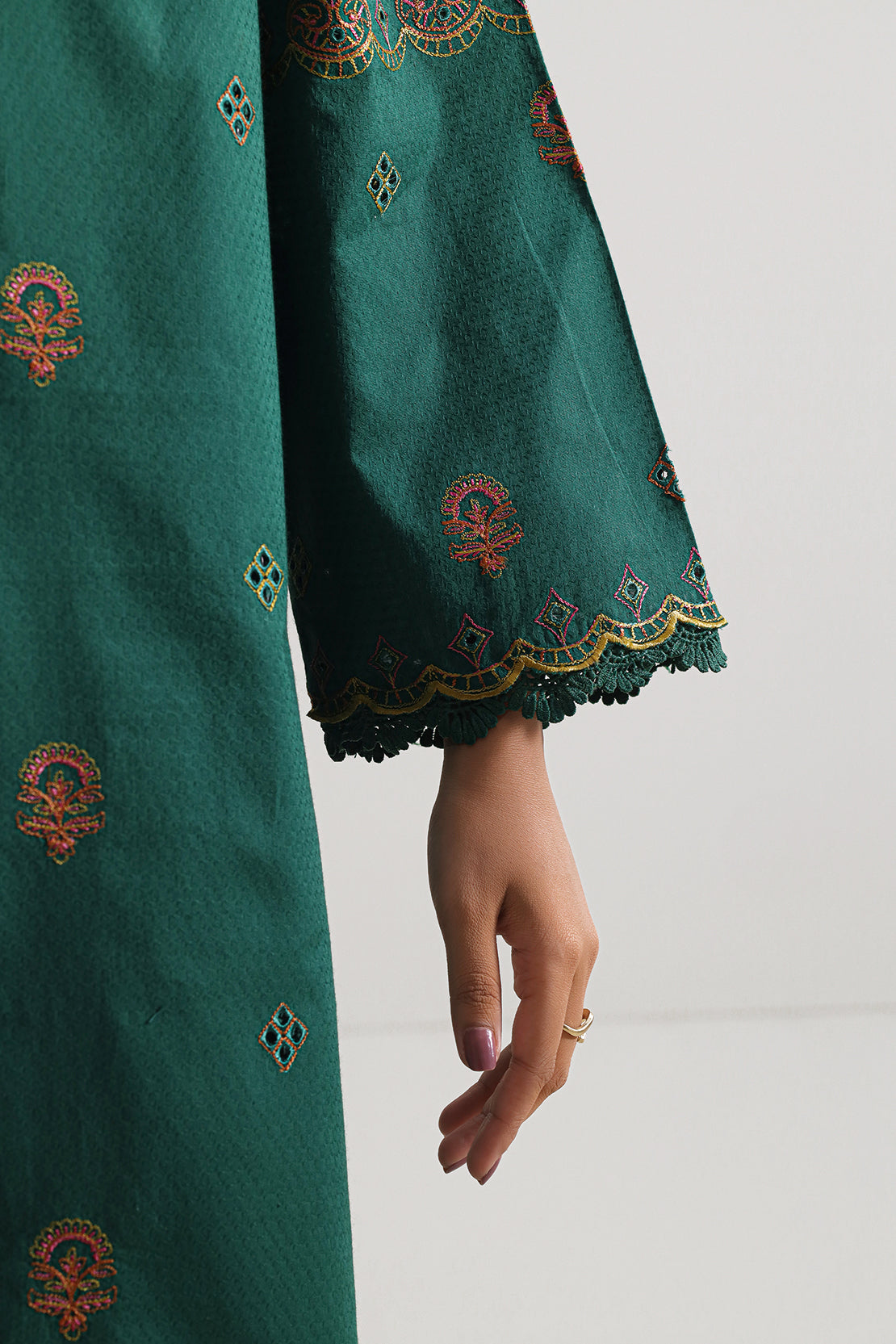An Opulent Ready-To-Wear Three-Piece Ensemble Crafted From Premium Cotton Jacquard With Intricate Embroidery That Elevates Every Detail. The Professionally Tailored Shirt Blends Refined Structure With Creative Flair, Accompanied By A Bemberg Chiffon Dupatta That Introduces Airy Movement, And A Dyed Stitched Trouser For Sleek Completeness. This SAYA Set Offers Elevated Formality, Effortless Coordination, And Immediate Elegance — Ideal For Festive Occasions, Formal Events, Or Style-Forward Celebrations
