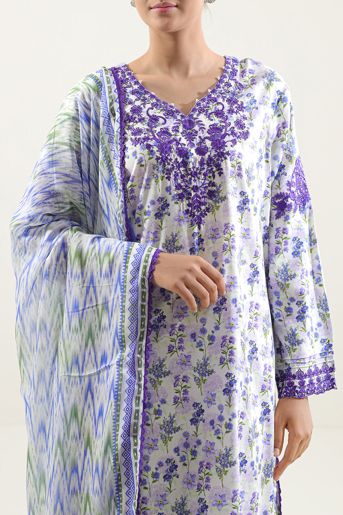 Printed Embroidered Viscose Twill Stitched 3 Piece With (Chiffon Dupatta)