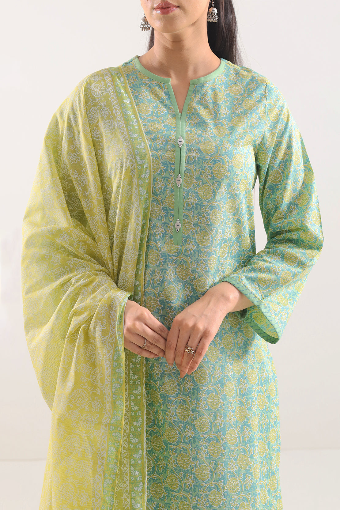Fresh And Refined, This SAYA Printed Lawn Stitched 3-Piece In Lush Green Radiates Poised Elegance. The Premium Lawn Fabric Delivers Unmatched Breathability And A Silky Drape That Moves With Grace. The All-Over Print Combines Nature-Inspired Motifs With Artistic Flourish To Enrich The Green Base Subtly. Expert Tailoring And Crisp Stitching Deliver A Polished Finish With Clean Lines. This Coordinated Ensemble Offers Ready-Wear Ease For Festive Day Functions, Wedding Events, Or Elegant Social Occasions — A Balanced Blend Of Comfort, Style, And Seasonal Appeal.