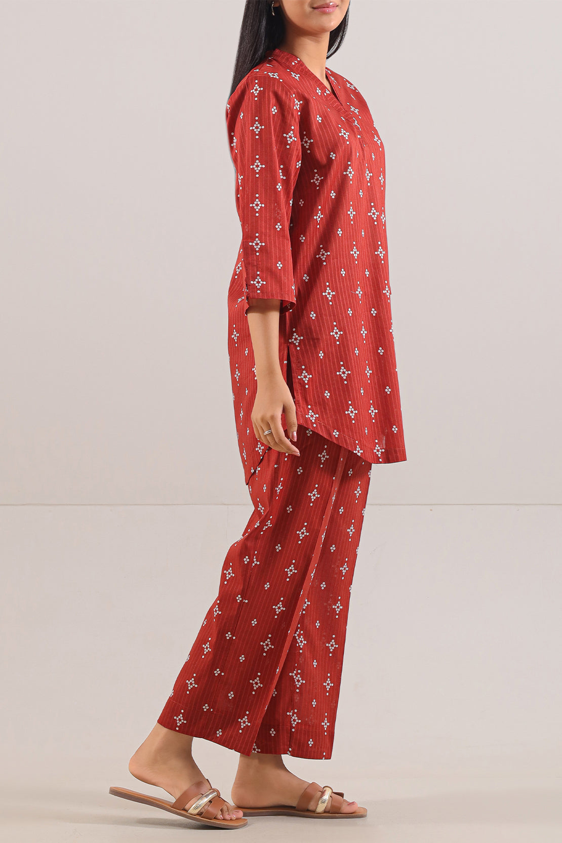 Printed Lawn Stitched Two-Piece Shirt & Trouser By SAYA, Crafted From Lightweight, Breathable Lawn Fabric That Keeps You Cool And Stylish In Warm Weather. The Shirt Boasts A Rich Rust Tone With Elegant Print Detailing, Paired Seamlessly With Matching Trouser For A Coordinated Look. Ready-To-Wear With Precision Stitching and Polished Hemlines, This Set Blends Comfort and Fashion Effortlessly. Ideal For Casual Gatherings, Day Events Or Polished Everyday Wear.