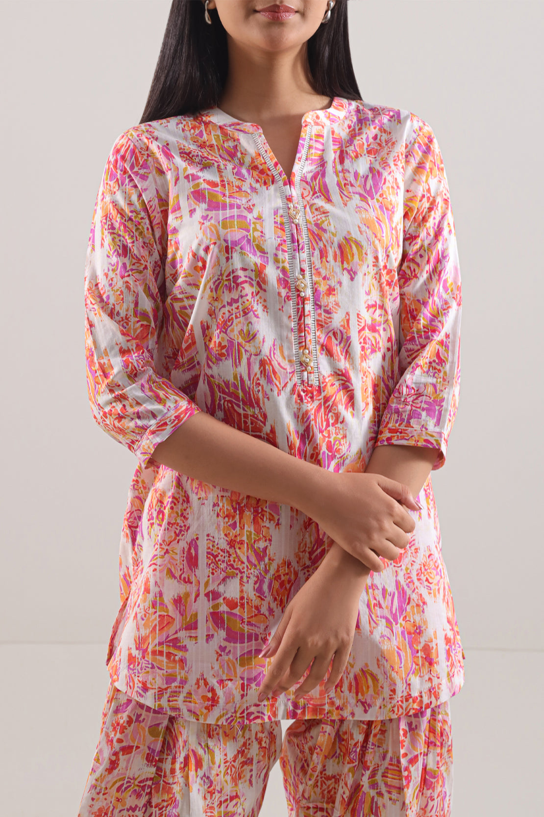 Pink Printed Strip Lawn Two-Piece From SAYA Includes Ready-To-Wear Shirt And Trouser In Lightweight Lawn Fabric. Shirt Features Stylish Stripe Print And Clean Tailoring, While Trouser Offers Comfortable Fit. Breathable Material Makes It Perfect For Day Outings, Casual Events Or Everyday Looks With Coordinated Style.