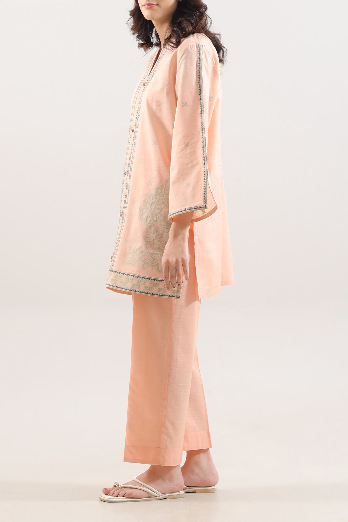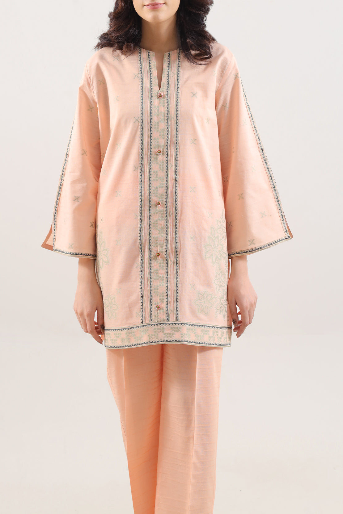 Cotton Jacquard Stitched 2-Piece By SAYA Features A Rich, Textured Cotton Jacquard Fabric Woven With Intricate Patterns That Give A Sophisticated Raise And Depth. The Ready-To-Wear Shirt Offers Structured Comfort While The Trouser Delivers Breathable Ease — Perfect For Refined Everyday Or Semi-Formal Wear.