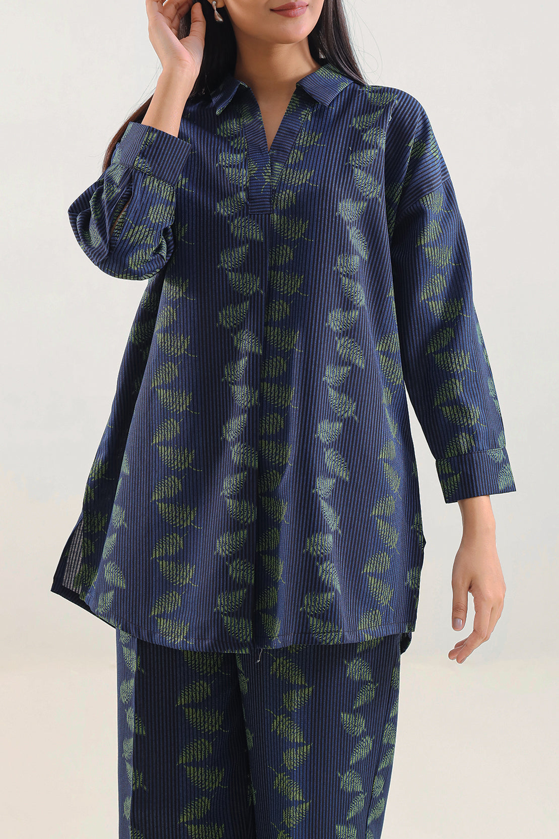 Step Into Elevated Comfort With The SAYA Cotton Jacquard 2-Piece Set, Crafted From Cotton Jacquard Fabric — A Weave Where Intricate Patterns Are Woven Directly Into The Fabric, Creating Rich Texture, Depth, And Long-Lasting Elegance. The Shirt Features A Clean, Tailored Collar And Neat Stitching, Delivering A Polished Silhouette That Retains Comfort. Paired With It Is A Straight-Cut Trouser With An Elastic Waistband, Ensuring Easy Wear And Freedom Of Movement For All-Day Use. The Natural Cotton Base Ensures Breathability And Skin-Friendly Comfort, While The Jacquard Weave Adds Structure And Durability — Resisting Fading, Creasing, And Wear Over Time