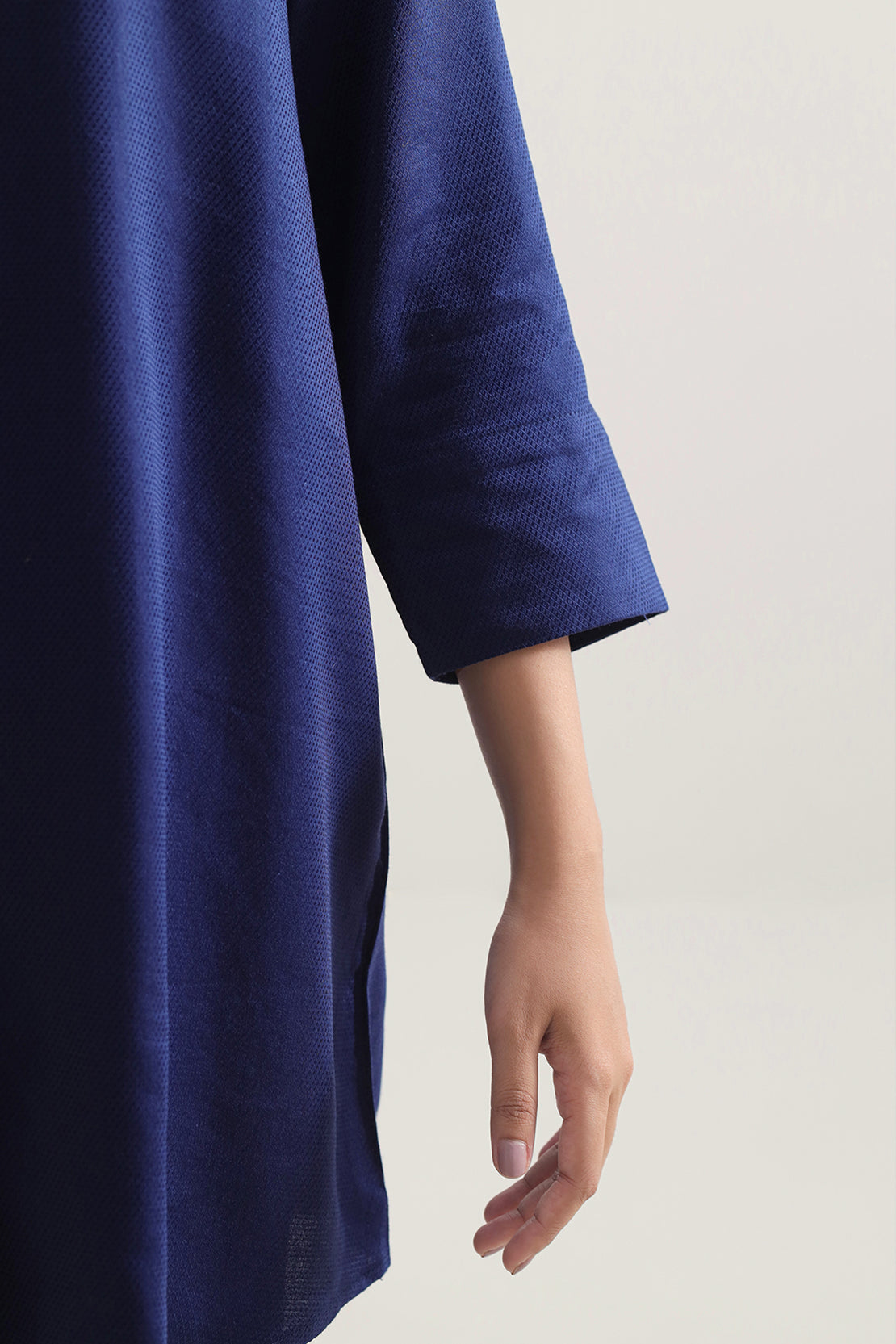Blue Cotton Jacquard Two-Piece From SAYA Includes A Ready-To-Wear Shirt And Trouser. Jacquard Weave Creates Elegant Texture And Subtle Pattern While 100% Cotton Offers Breathability And Comfort. Shirt Is Tailored With Classic Collar And Clean Cut, Trouser Complements With A Relaxed Yet Polished Fit. Ideal For Semi-Formal Events, Office Wear, Or Stylish Daily Wear.