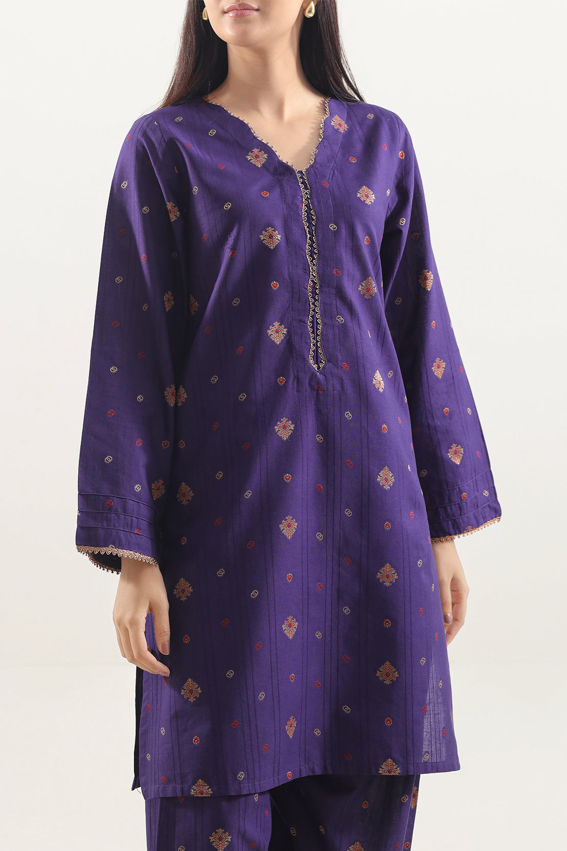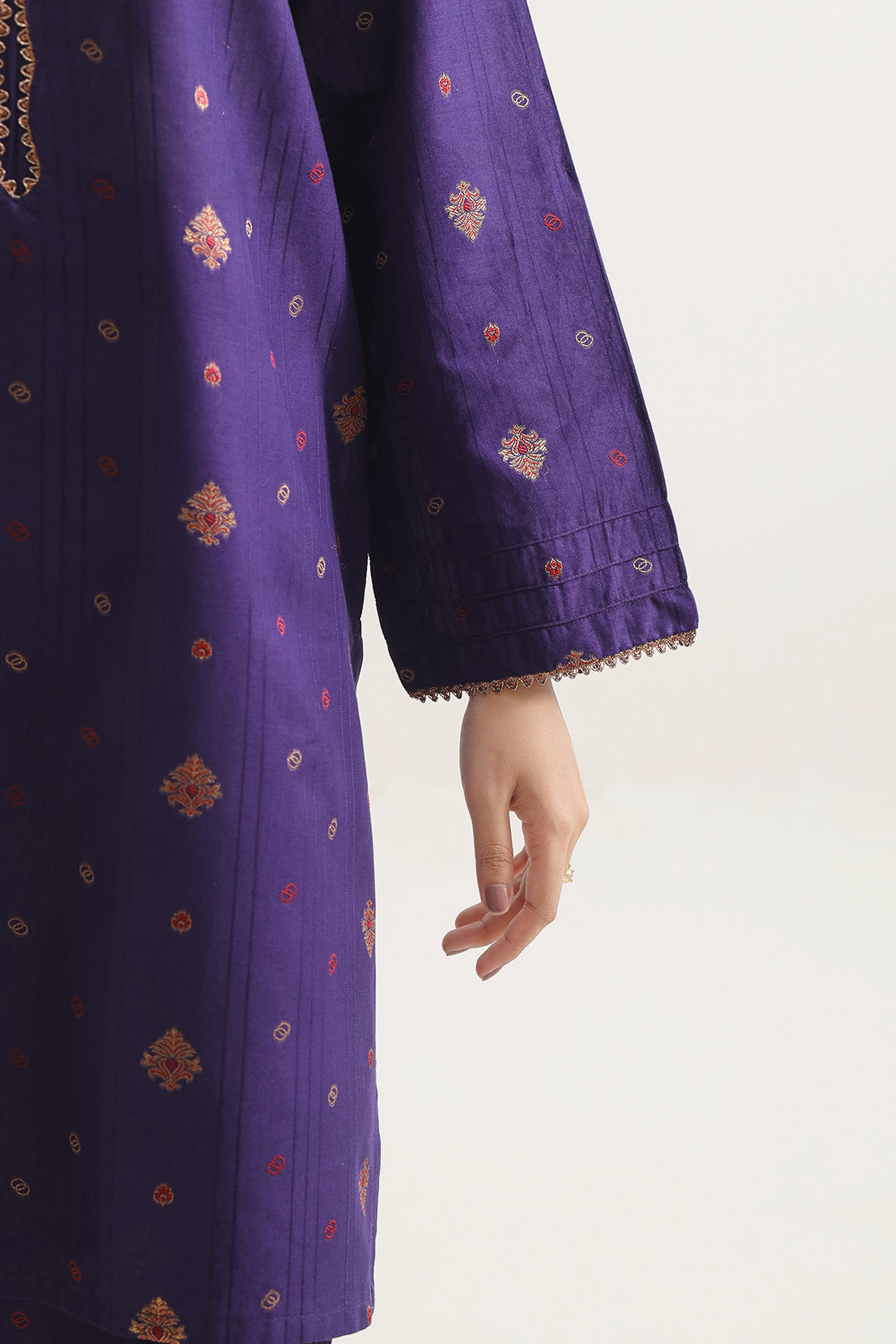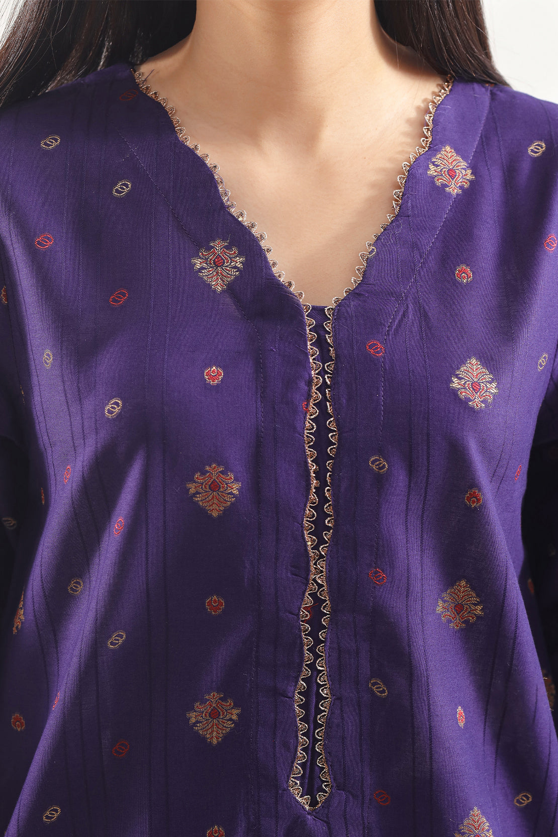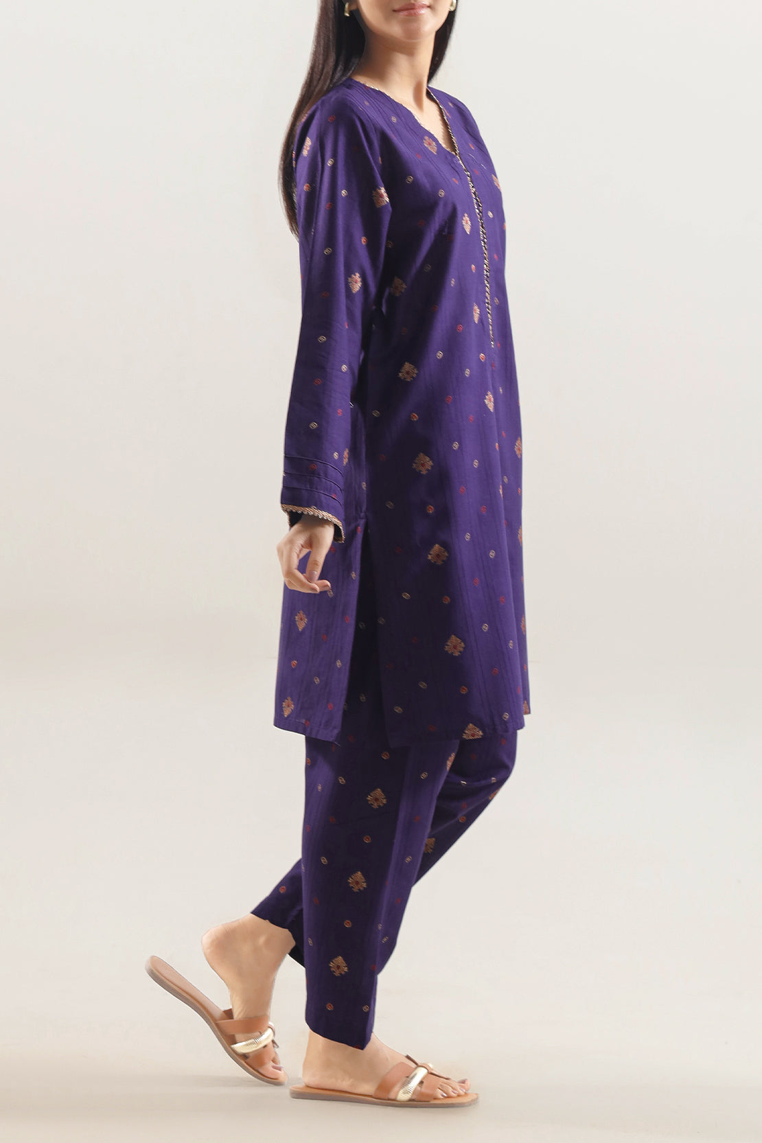 Cotton Jacquard Stitched 2-Piece By SAYA Exhibits A Deep Purple Tone. Woven From Textured Jacquard Cotton, It Marries Breathability With Structure. The Shirt Features Clean Tailoring With A Refined Collar And A Sleek Silhouette, While The Trouser Offers Smooth Fit And Seamless Coordination. Ideal For Semi-Formal Events, Office Evenings Or Polished Daywear That Demands Understated Elegance.