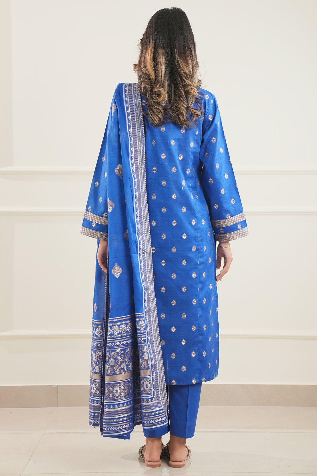 Elevate your wardrobe with this exquisite Cotton Jacquard Stitched 3-Piece ensemble. Designed for elegance and comfort, it features a beautifully textured cotton jacquard fabric with a tailored fit. The set includes a stylish shirt, matching trousers, and a complementing dupatta, making it perfect for formal and casual occasions.