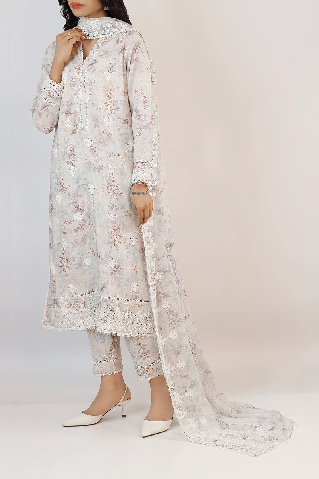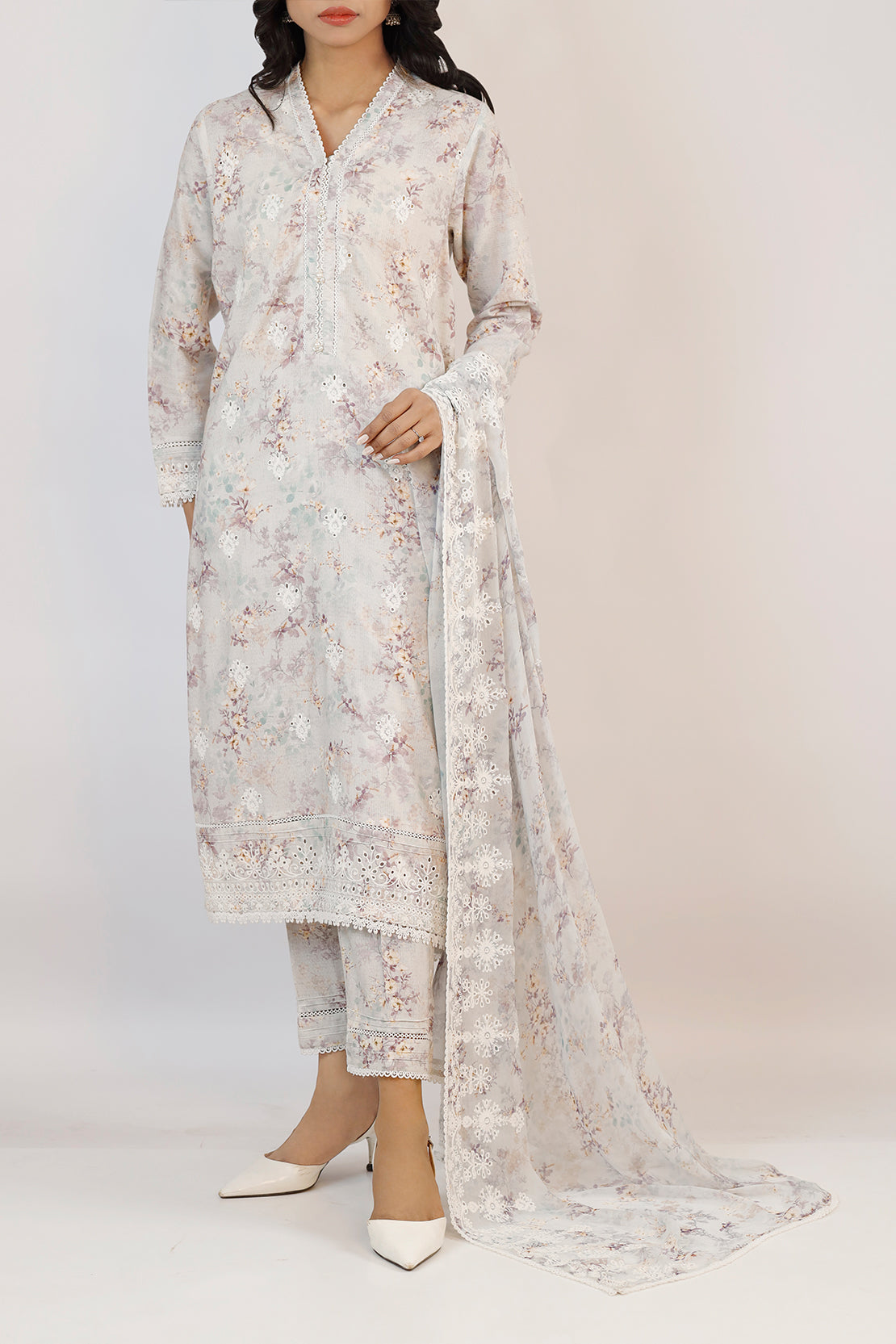 Embroidered Cotton Jacquard Stitched 3 Piece
