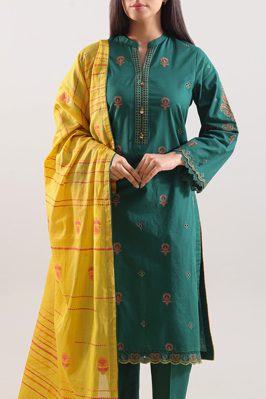 Luxury Pret Embroidered Cotton Jacquard Stitched 3 Piece