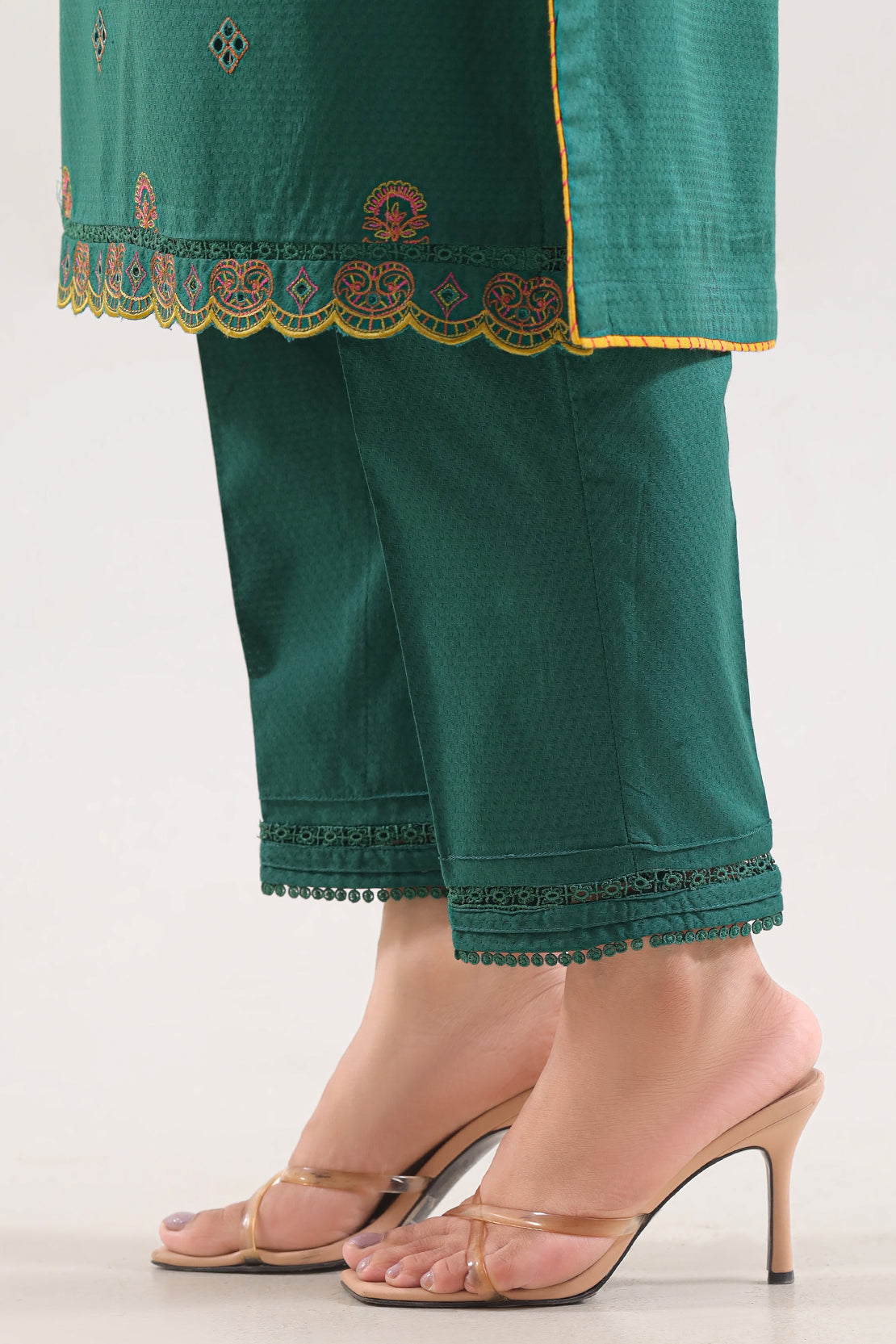 An Opulent Ready-To-Wear Three-Piece Ensemble Crafted From Premium Cotton Jacquard With Intricate Embroidery That Elevates Every Detail. The Professionally Tailored Shirt Blends Refined Structure With Creative Flair, Accompanied By A Bemberg Chiffon Dupatta That Introduces Airy Movement, And A Dyed Stitched Trouser For Sleek Completeness. This SAYA Set Offers Elevated Formality, Effortless Coordination, And Immediate Elegance — Ideal For Festive Occasions, Formal Events, Or Style-Forward Celebrations