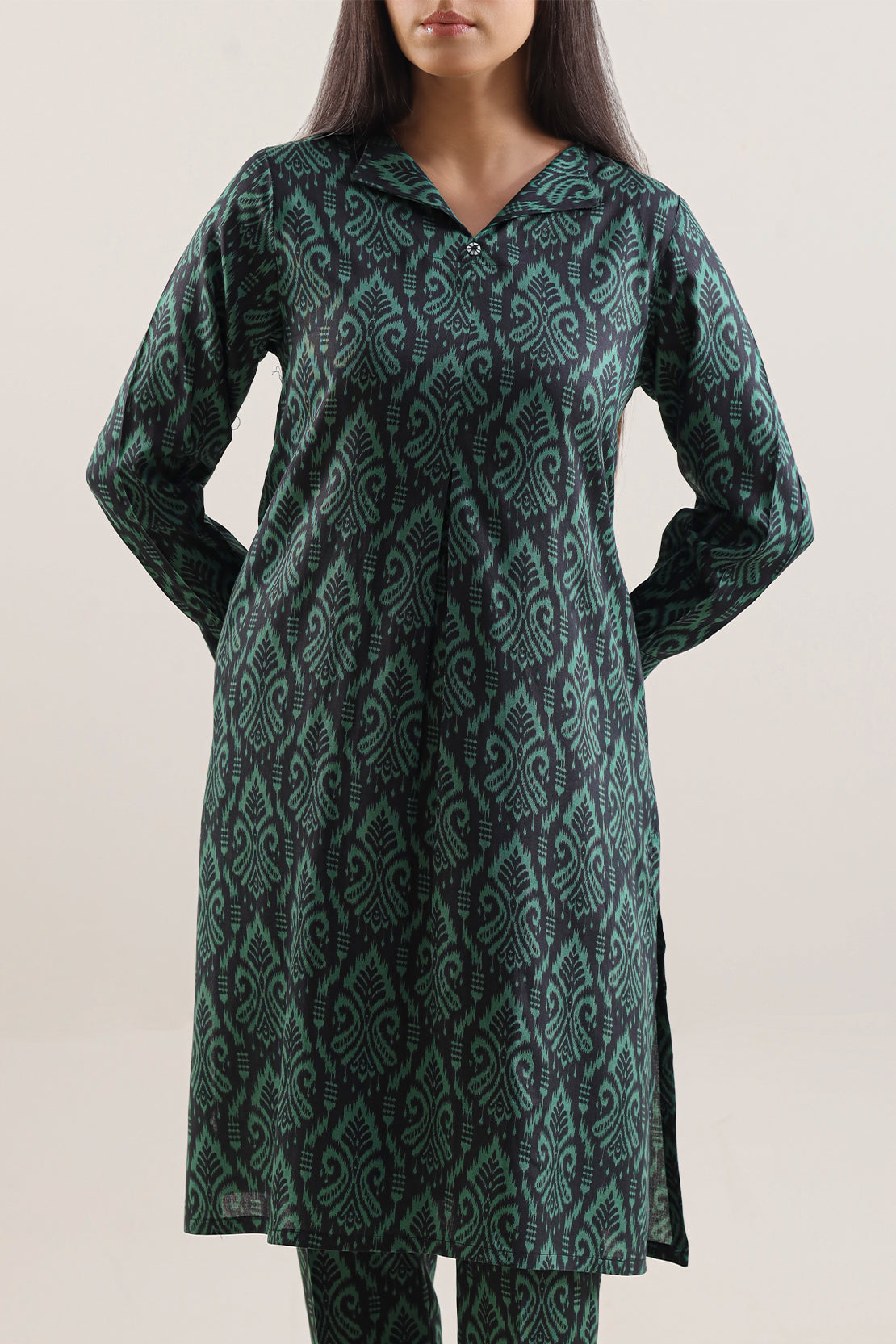 Printed Arabic Lawn Stitched 2‑Piece Set By SAYA Radiates Understated Elegance And Lightweight Comfort. Crafted From Arabic Lawn Fabric, This Ensemble Offers A Soft, Crisp Texture That Feels Airy And Breathable — Perfect For Warm-Weather Wear. The Delicate Arabic-Inspired Print Infuses A Touch Of Cultural Sophistication, Making The Design Both Artistically Rich And Versatile. Featuring A Ready-To-Wear Stitched Shirt And A Coordinated Trouser, The Set Is Tailored To Create A Harmonious Silhouette — The Shirt Is Structured Yet Lightweight, While The Trouser Falls In A Clean, Straight Line For A Balanced, Comfortable Fit.