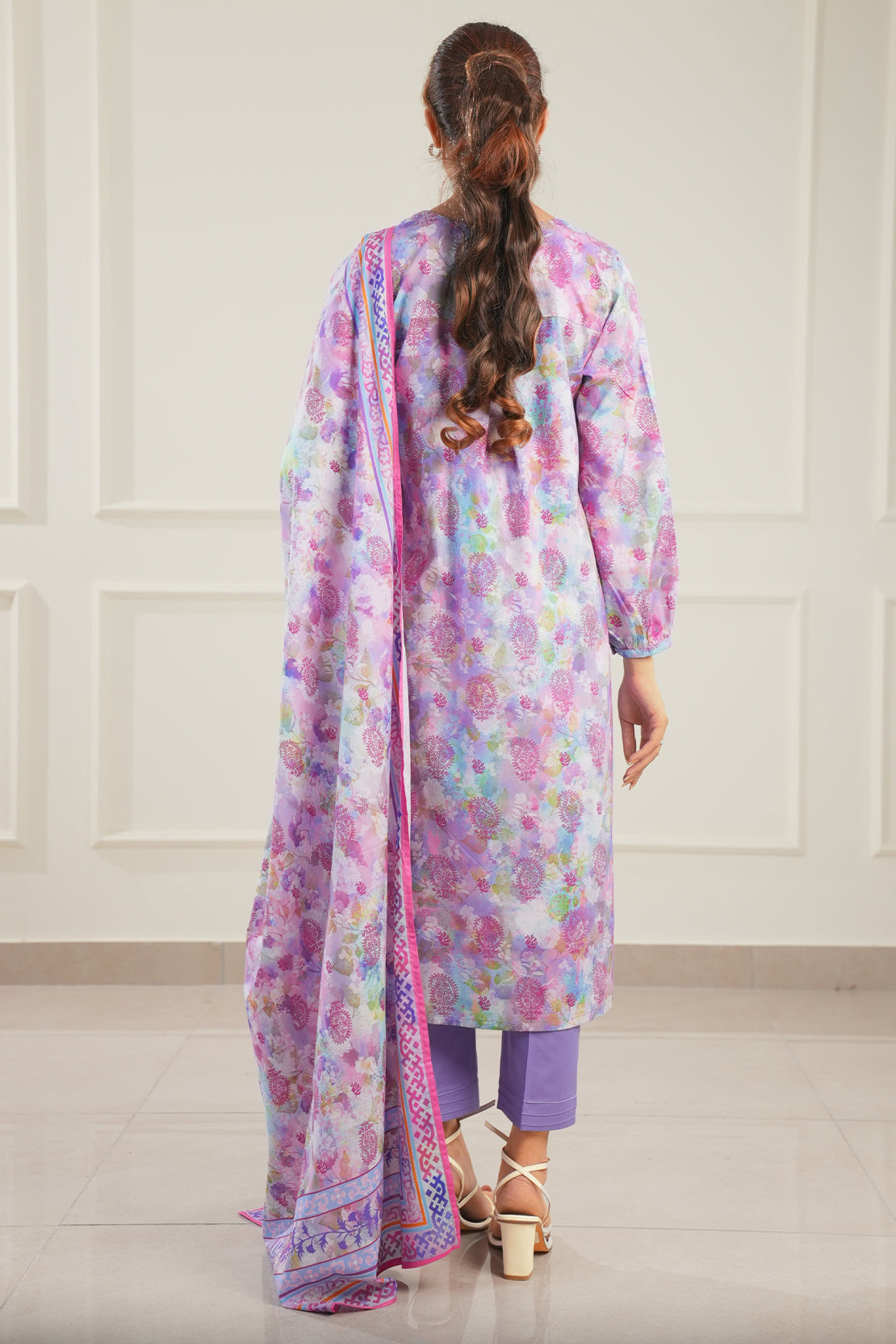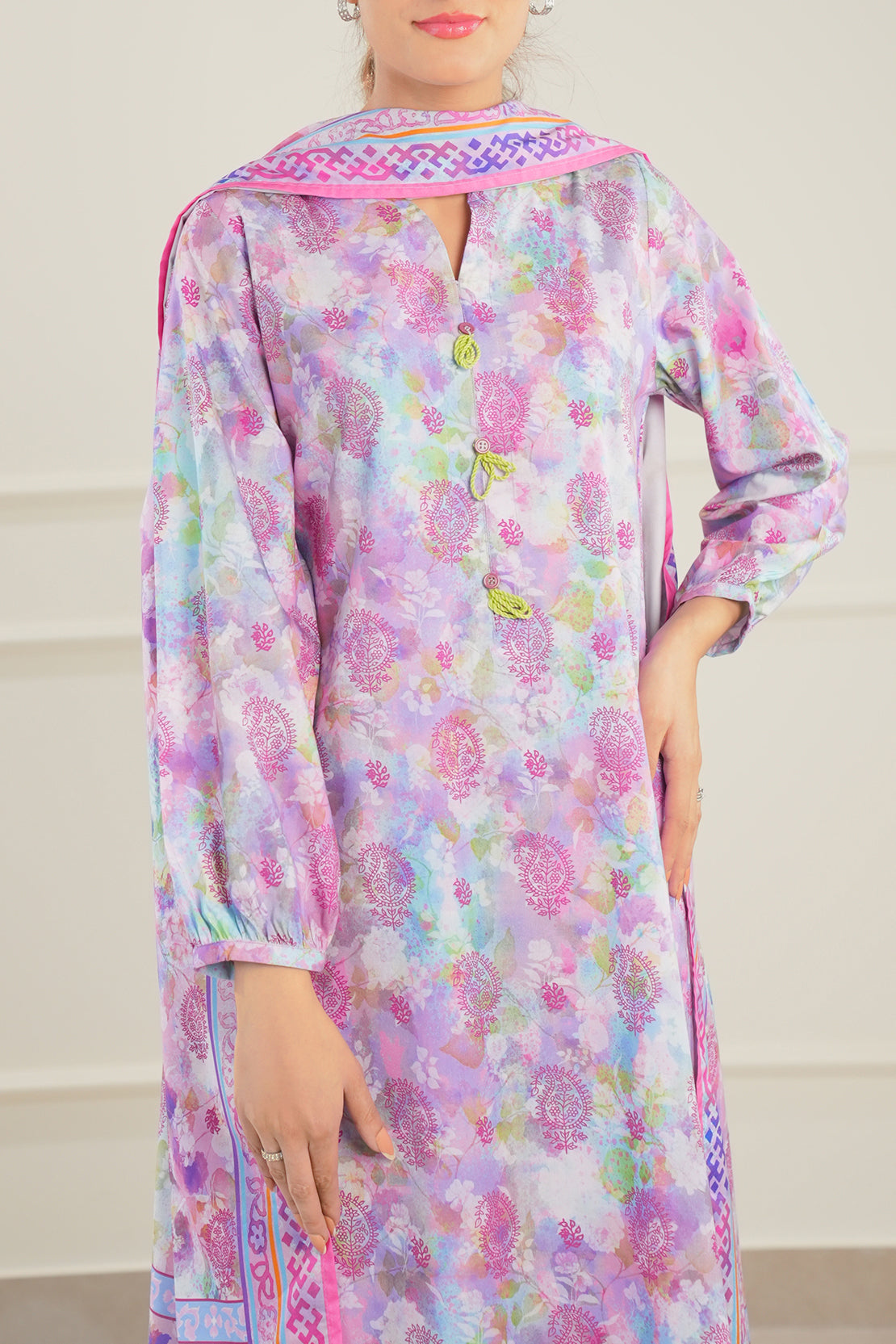 Experience effortless elegance with Saya's Printed Cotton Viscose Stitched 3-Piece ensemble. Combining a beautifully printed shirt, solid trousers, and a coordinated dupatta, this set is designed to elevate your everyday look with ease and comfort.
