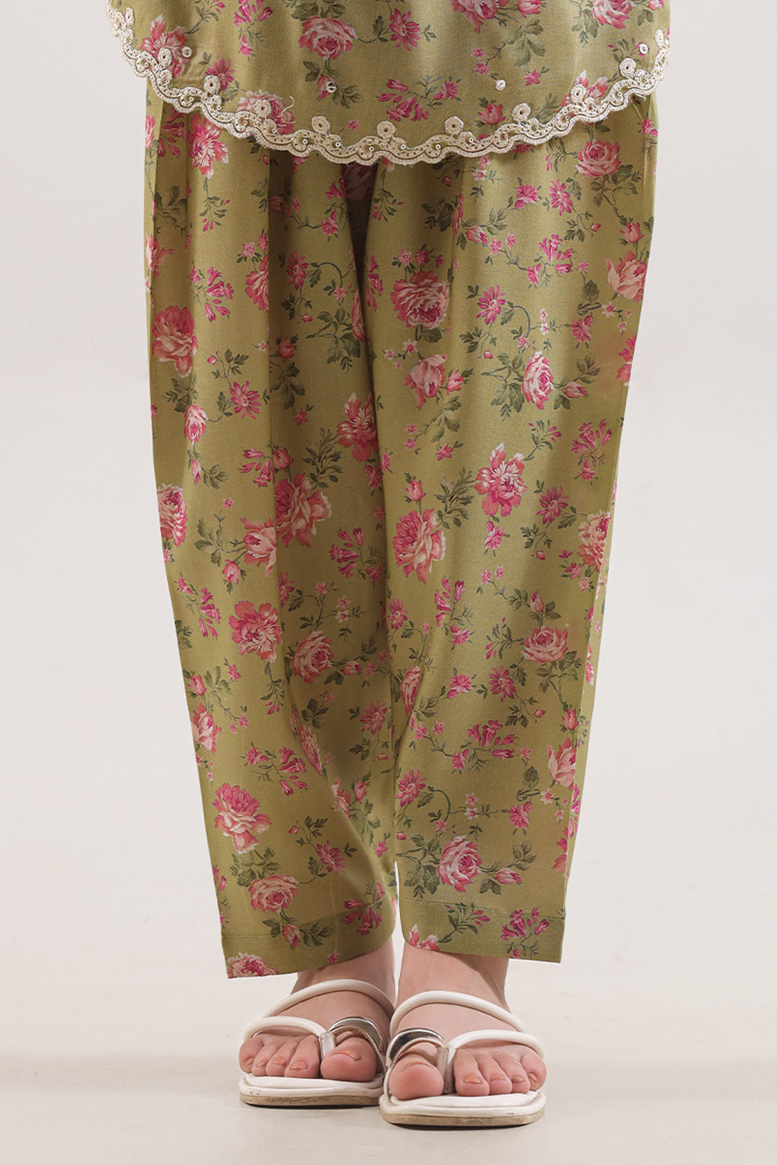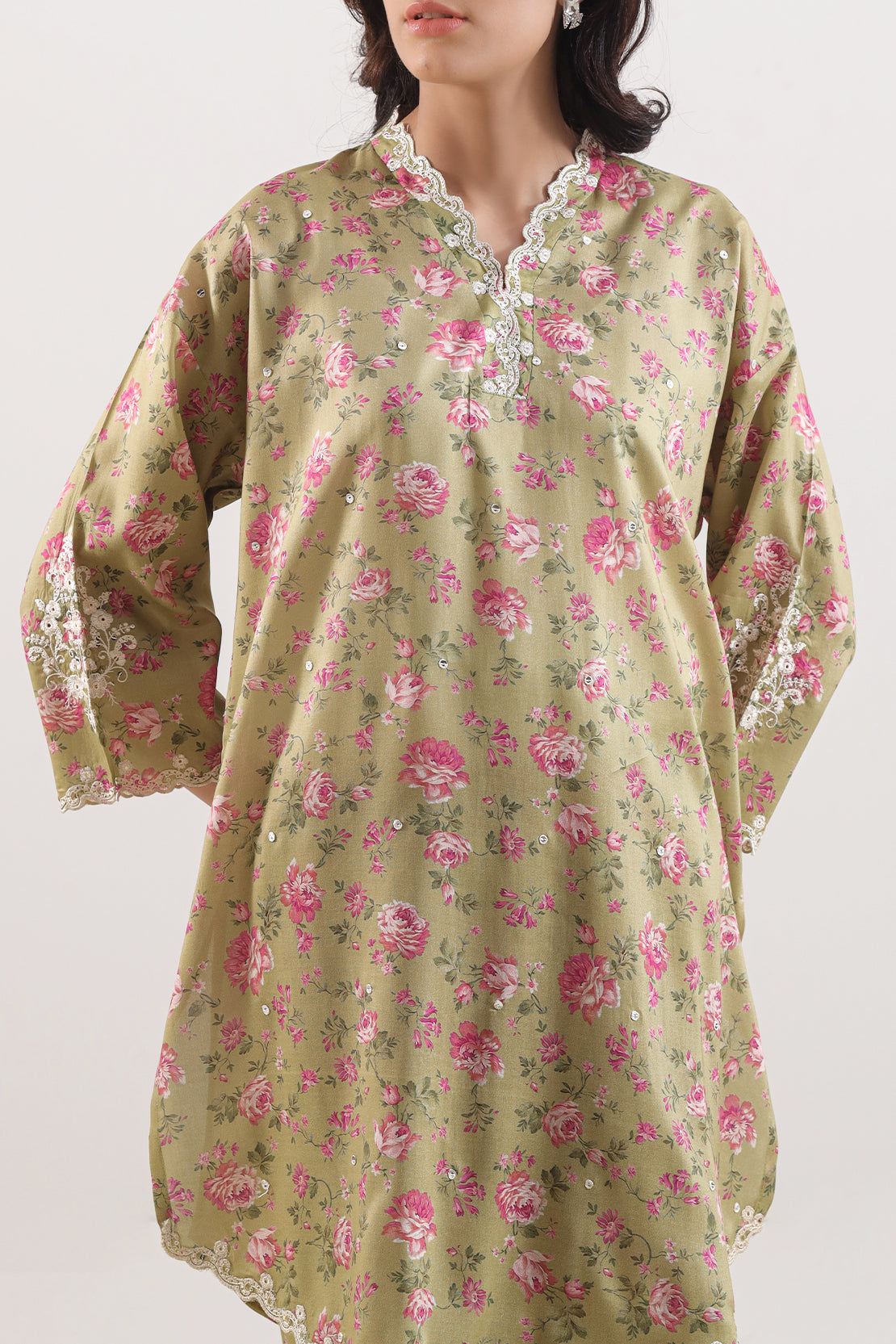 Elevate Your Wardrobe With This Exquisitely Designed Two-Piece From SAYA, Crafted In Lawn Fabric — A Fine, Lightweight Known For Its Breathability And Refined Texture. The Shirt Features Intricate Arabic-Inspired Embroidery That Adds A Touch Of Cultural Sophistication Without Overpowering The Subtle Print. The Matching Trouser Complements With A Straight Cut And Seamless Stitching, Delivering A Polished, Coordinated Look. Perfect For Daytime Festivities, Semi-Formal Events, Or Elegant Summer Gatherings, This Set Combines Comfort, Quality Craftsmanship, And Timeless Style.