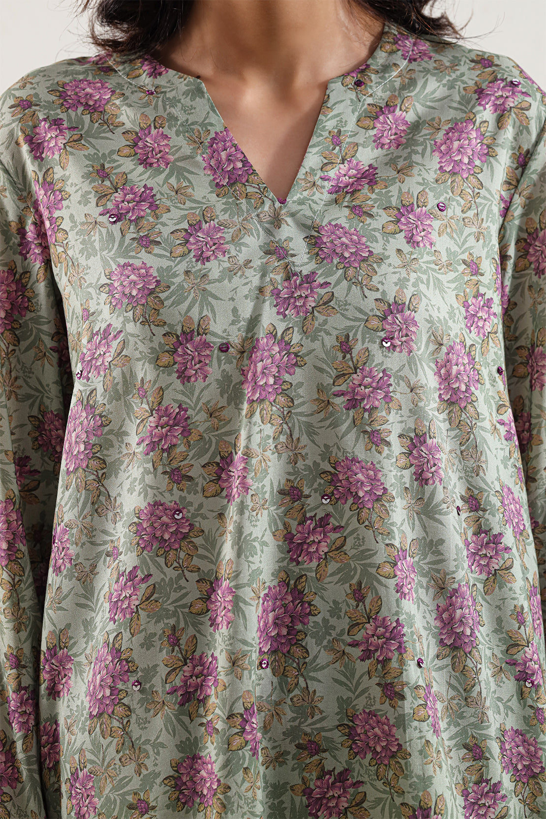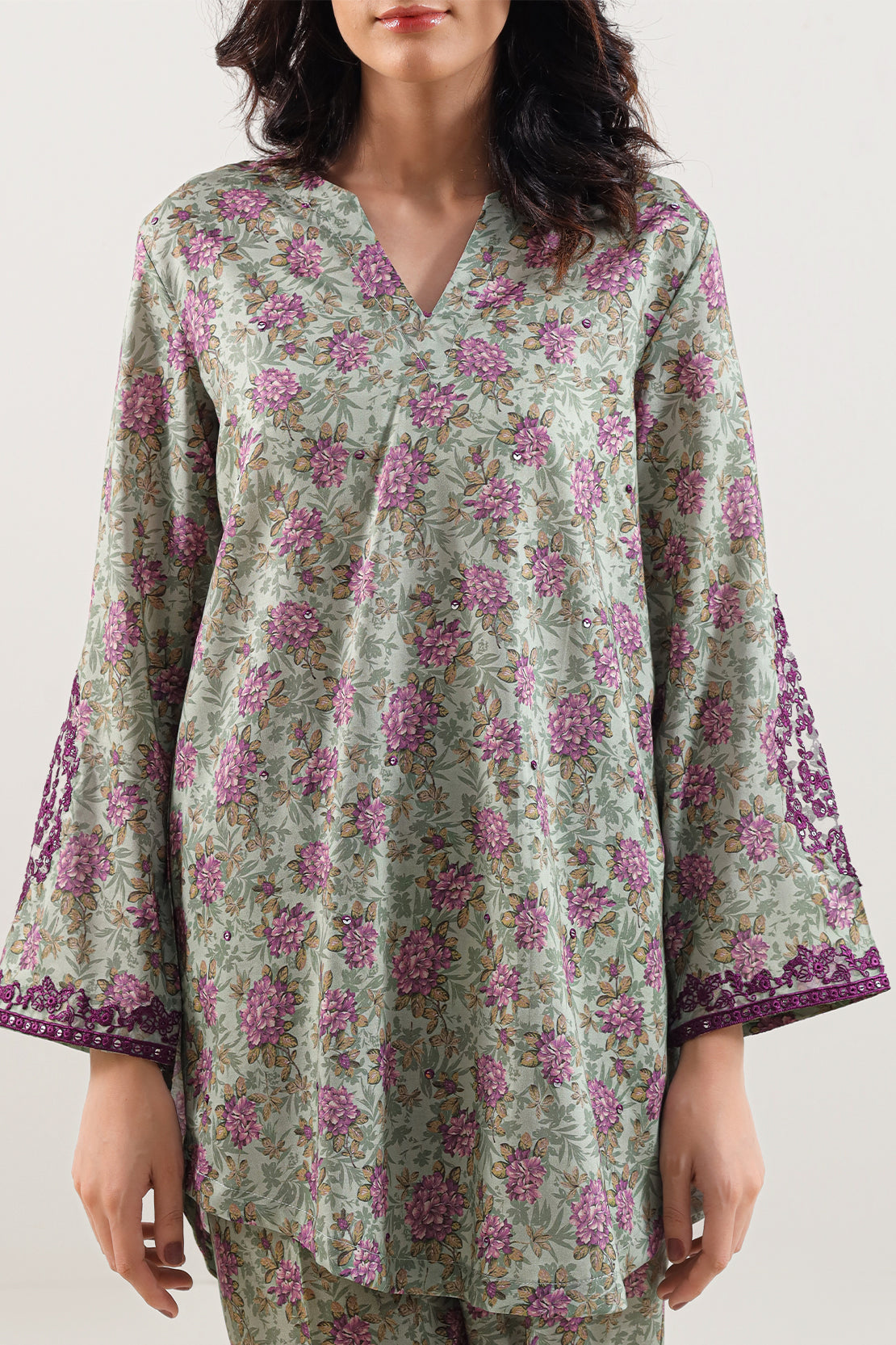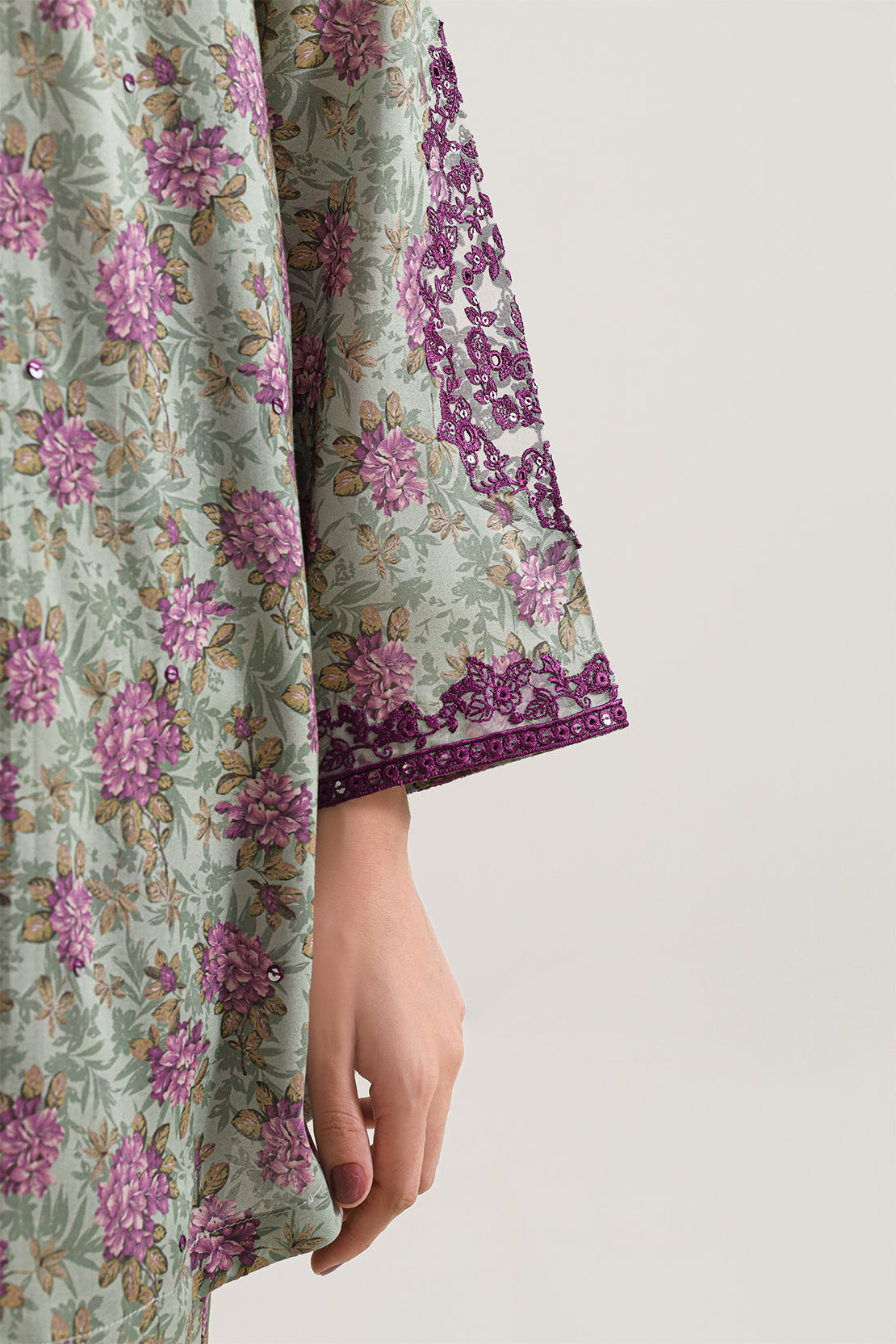 Ready To Wear Printed Embroidered Arabic Lawn Stitched Shirt.