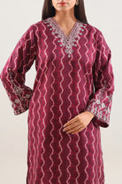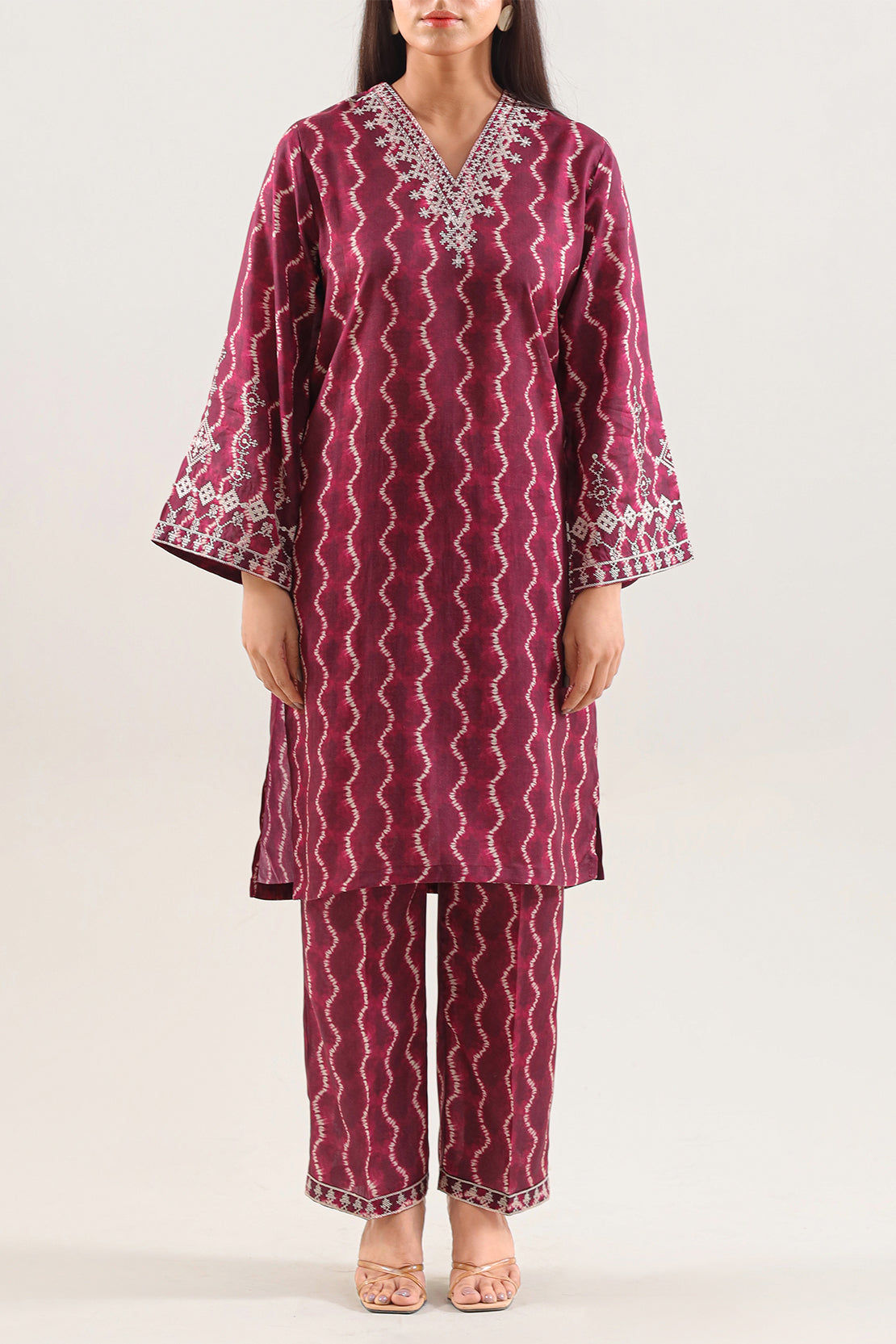 Elevate Your Wardrobe With This Exquisitely Designed Two-Piece From SAYA, Crafted In Lawn Fabric — A Fine, Lightweight Known For Its Breathability And Refined Texture. The Shirt Features Intricate Arabic-Inspired Embroidery That Adds A Touch Of Cultural Sophistication Without Overpowering The Subtle Print. The Matching Trouser Complements With A Straight Cut And Seamless Stitching, Delivering A Polished, Coordinated Look. Perfect For Daytime Festivities, Semi-Formal Events, Or Elegant Summer Gatherings, This Set Combines Comfort, Quality Craftsmanship, And Timeless Style.