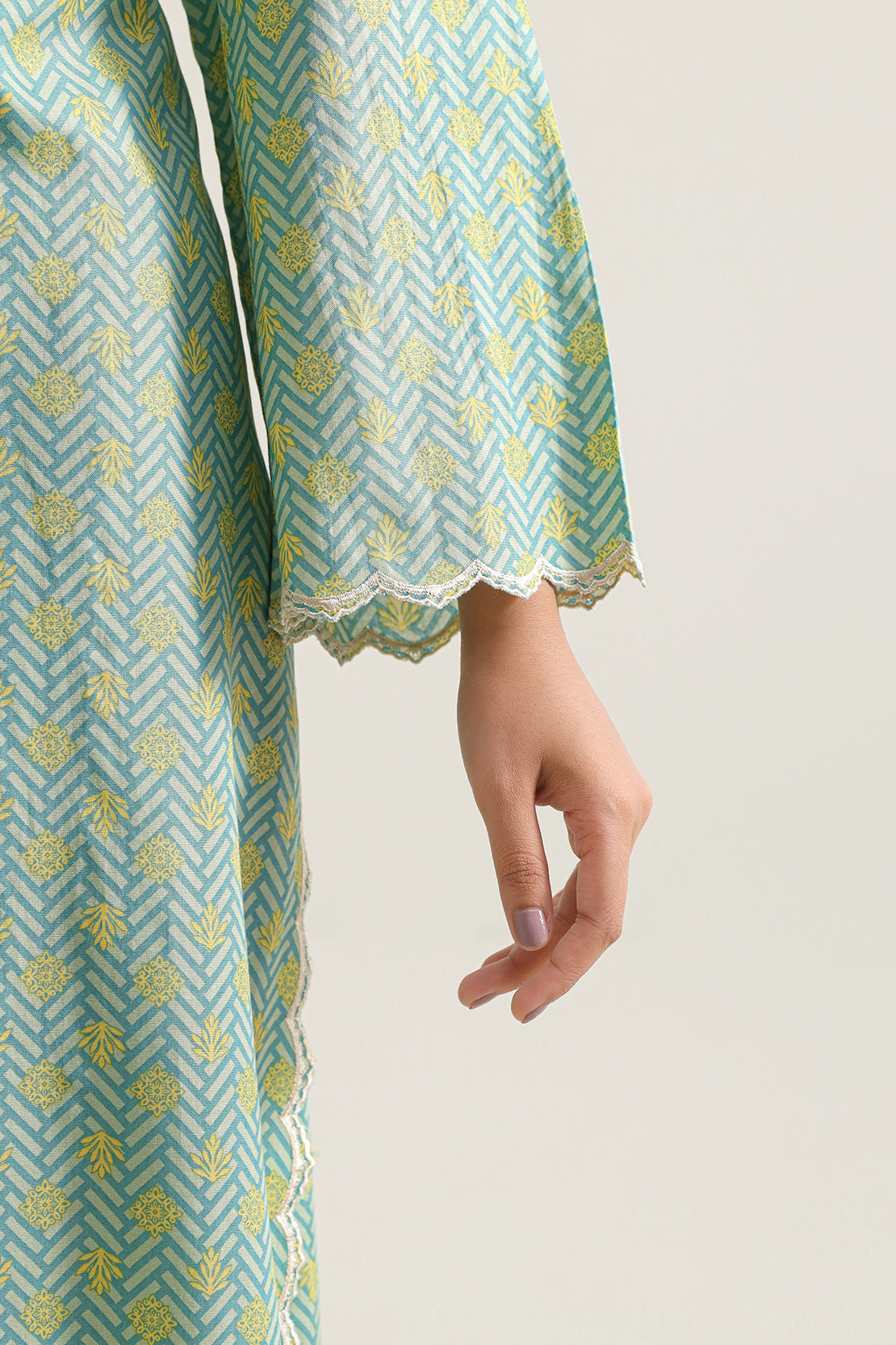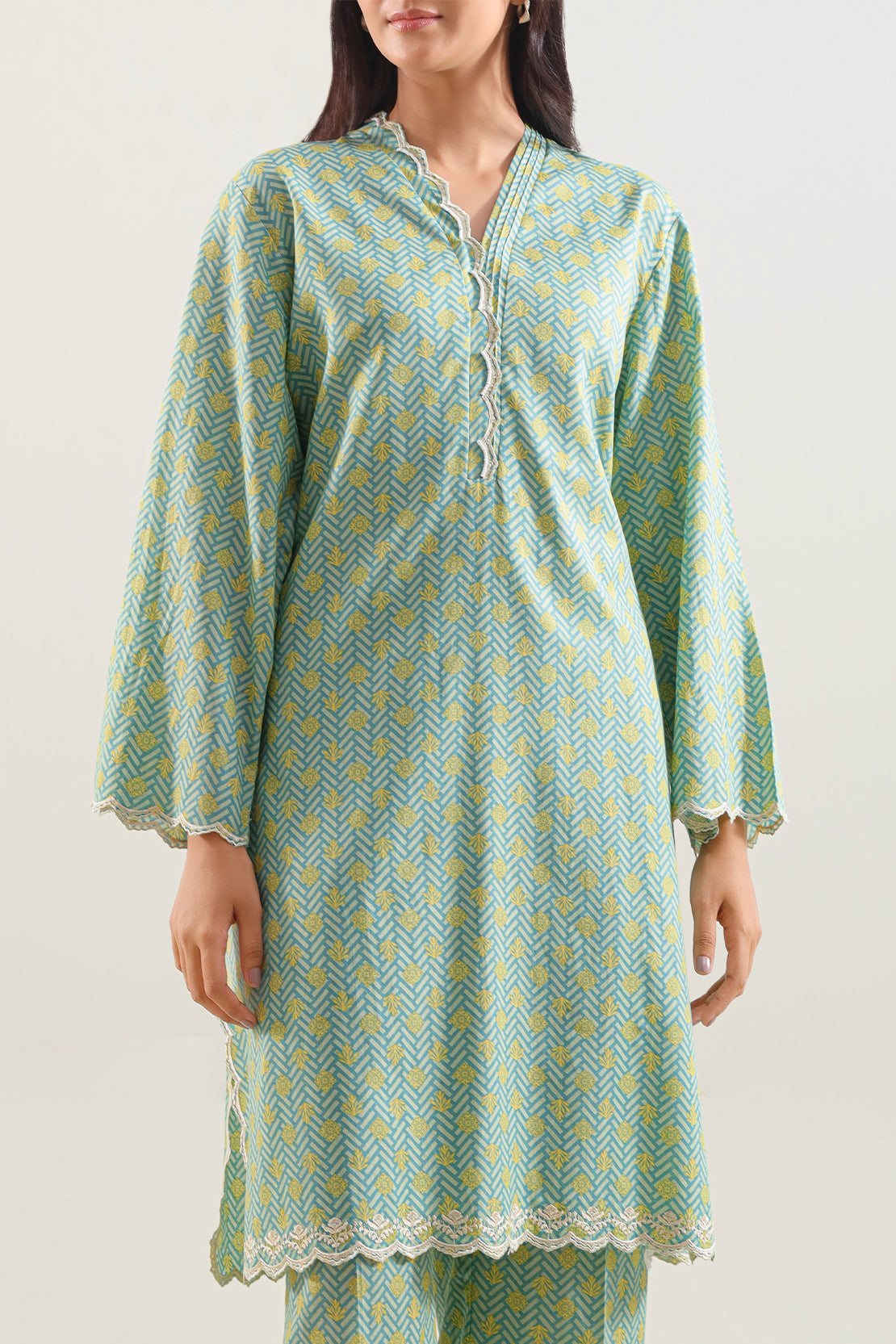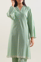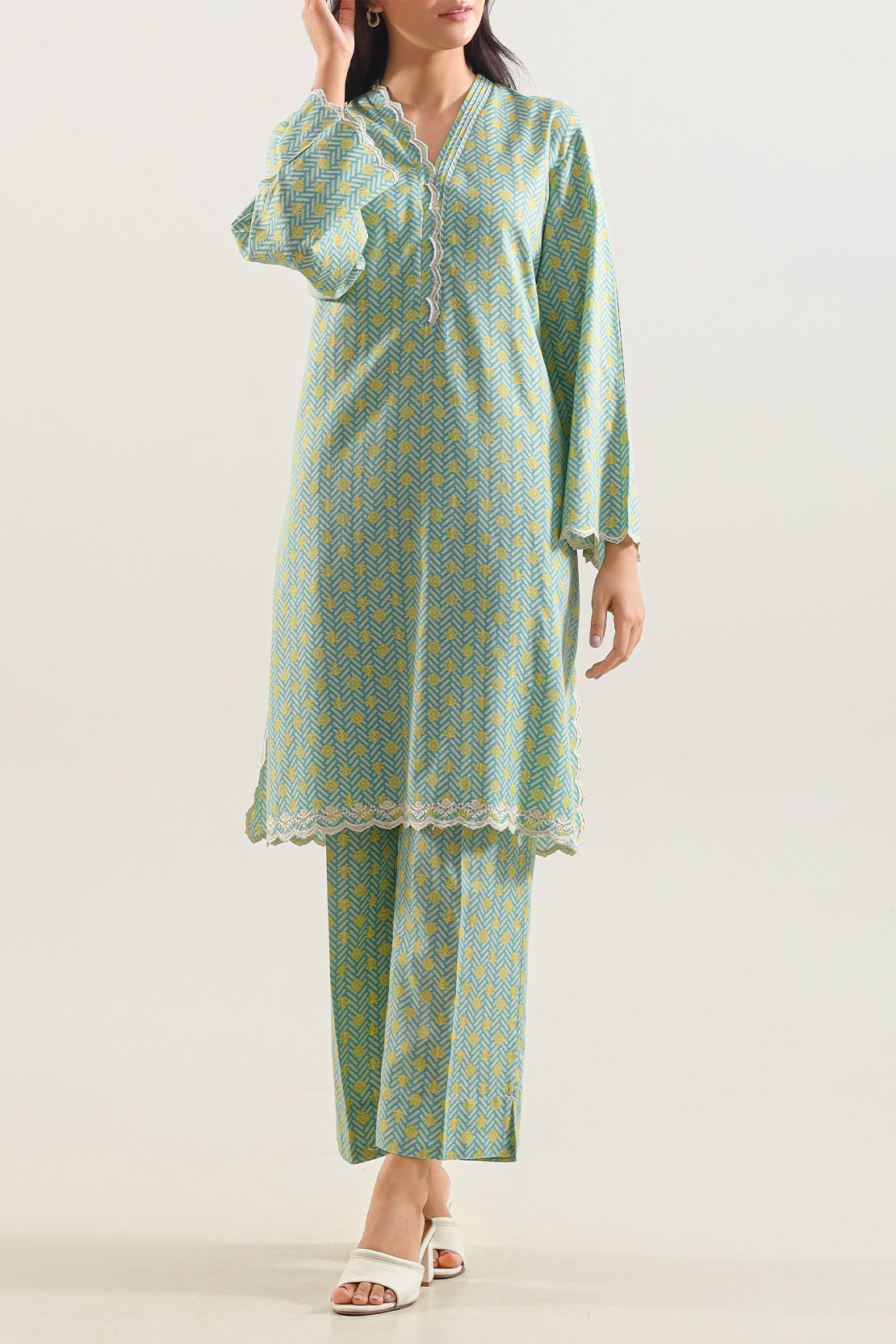 Printed Embroidered Stitched Lawn 2-Piece By SAYA Showcases Feather-Light Lawn Fabric In A Refreshing Sea Green Shade, Tailored Into A Ready-To-Wear Shirt Adorned With Delicate Embroidery Along The Front. Accompanied By A Coordinating Lawn Dupatta With Matching Print And A Dyed Trouser, This Ensemble Offers Effortless Wearability Without Sacrificing Elegance Or Comfort. Ideal For Semi-Formal Daywear, Casual Festive Looks, Or Chic Everyday Styling That Radiates Carefree Sophistication.