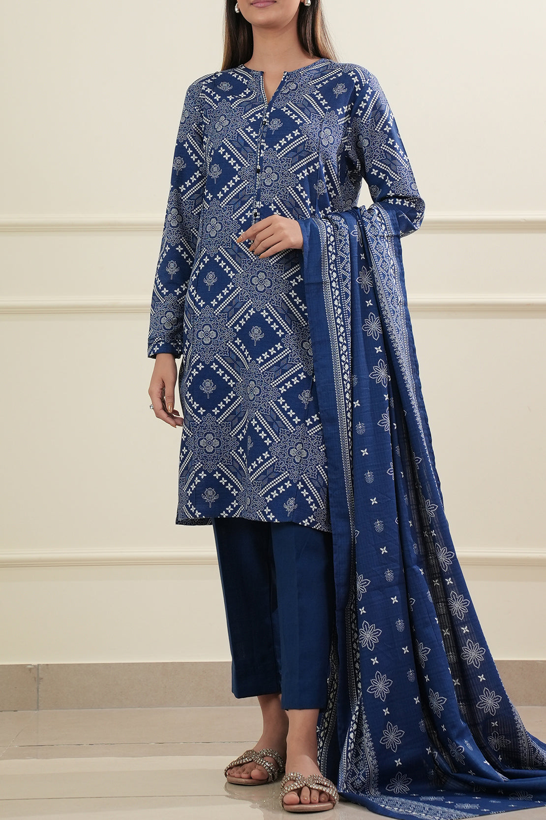 Printed Khaddar Stitched 3 Piece