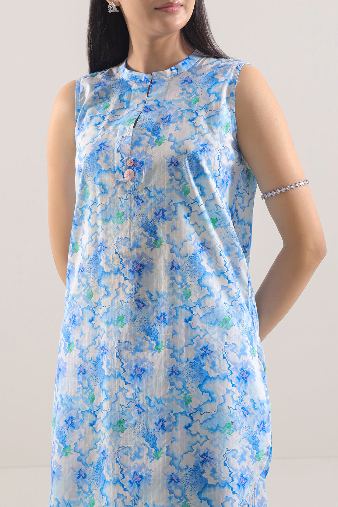 Printed Lawn Stitched Two-Piece Shirt & Trouser By SAYA, Crafted From Lightweight, Breathable Lawn Fabric Made For Warm Days. The Set Comes In A Fresh Blue Tone With Stylish Prints On The Shirt That Add A Pop Of Seasonal Charm, Complemented By A Coordinated Trouser For Polished Everyday Wear. Ready-To-Wear With Fine Stitching, Clean Finish, And Comfortable Fit, This Ensemble Is Perfect For Casual Outings, Daily Wear, Or Smart-Casual Events.