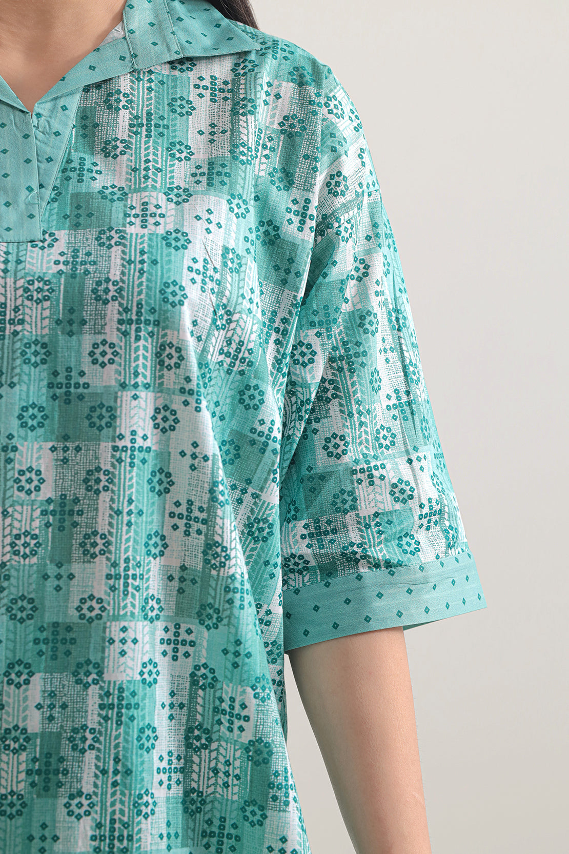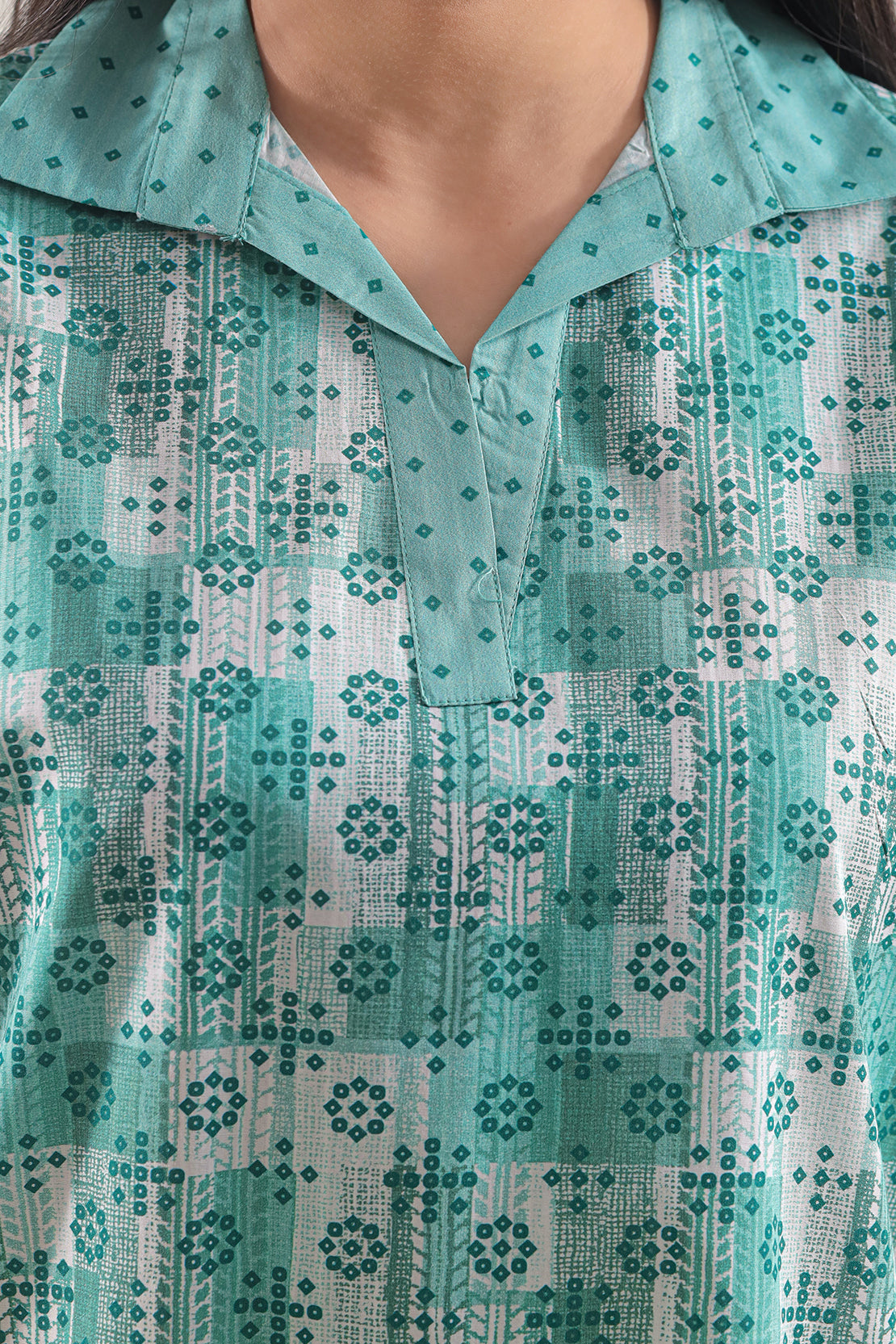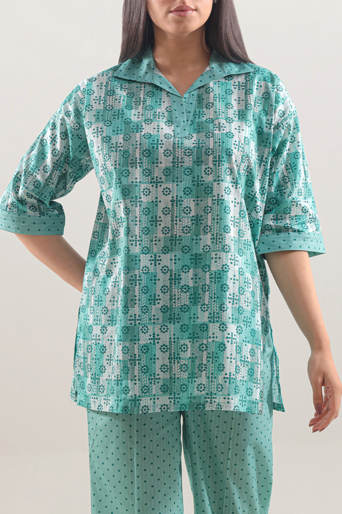 Printed Lawn Stitched 2-Piece By SAYA Glows In A Fresh Green Tone. Crafted From Lightweight Lawn Fabric With A Chic All-Over Print, It Offers Comfort And Airiness Through Warm Days. The Shirt Features Clean Stitching, A Neat Collar, And Ready-To-Wear Ease, While The Coordinated Trouser Delivers Structure Without Bulk. Ideal For Casual Outings, Daytime Events, Or Elegant Summer Style That Balances Flair With Simplicity.