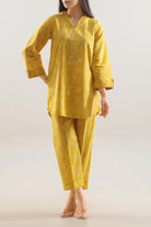 Printed Lawn Stitched 2-Piece By SAYA Radiates In A Crisp Yellow Tone With A Refined Printed Pattern Across The Shirt. Crafted From Lightweight, Breathable Lawn Fabric, The Ready-To-Wear Shirt Features Clean Stitching, A Structured Collar, And A Gentle Drape. The Matching Trouser Complements It With A Sleek Silhouette And Comfortable Fit. Ideal For Daytime Events, Summer Gatherings, Or Casual Chic Styling That Emphasizes Comfort And Subtle Elegance.