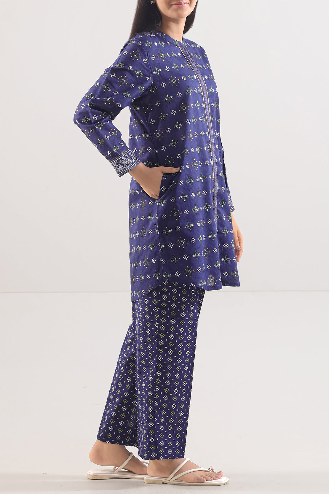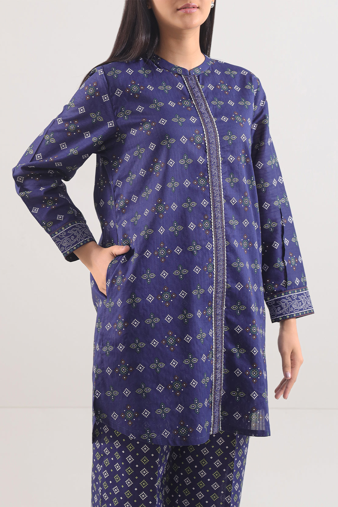 Delight In The Lightweight Elegance Of The SAYA Printed Lawn 2-Piece Set, Meticulously Crafted In Premium Lawn Fabric That Breathes With Every Step. The Shirt Displays A Graceful Print In Soft Hues, Complemented By Clean Lines, Perfect Stitching, And A Comfortable Fit. The Coordinating Trouser Is Designed With A Straight Silhouette To Guarantee Ease Of Movement And Seamless Pairing. Ideal For Warm Days, Garden Gatherings, Or Casual Festive Occasions, This Ensemble Offers Both Style And Practicality. A Chic Fusion Of Fabric Quality, Print Appeal, Utility, And Contemporary Flair.