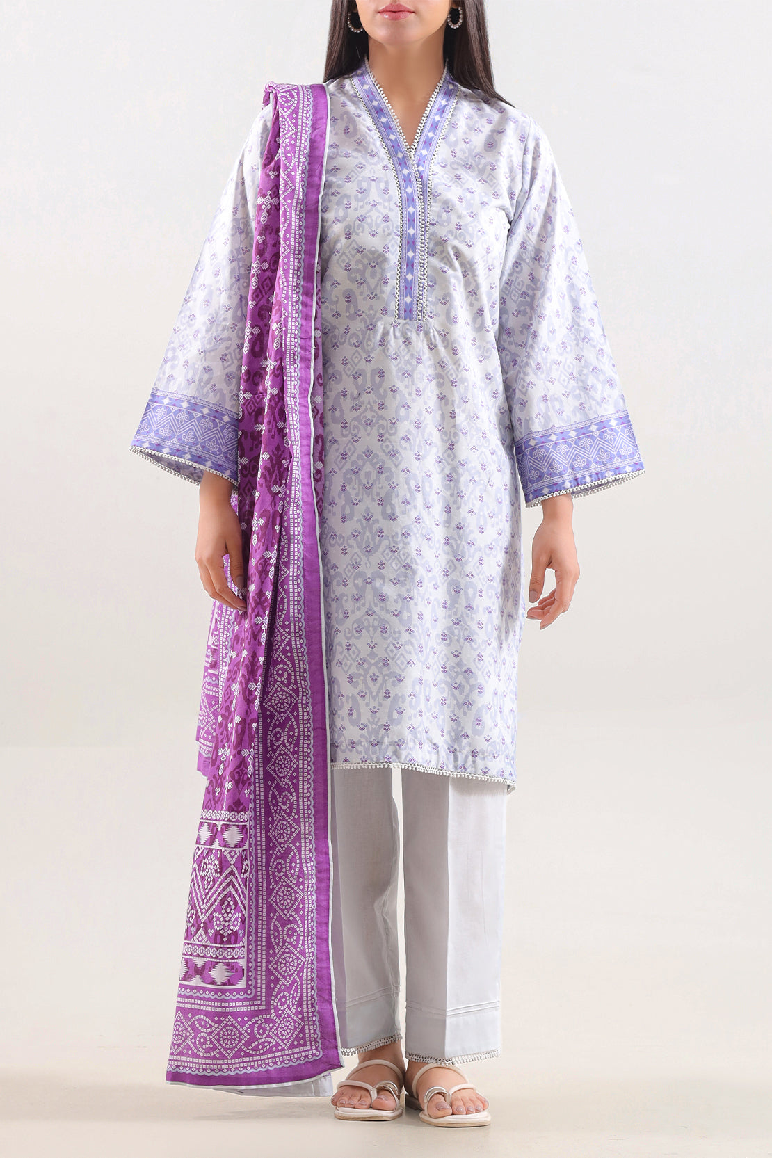 Printed Lawn Stitched 2-Piece Shirt & Trouser By SAYA Delivers A Blend Of Airy Comfort And Stylish Sophistication. Crafted From Lightweight, Breathable Lawn Fabric—Known For Excellent Ventilation. The All-Over Print Adds A Delicate, Refined Pattern That Enhances The Design Without Overpowering Its Subtle Elegance. The Ready-To-Wear Set Includes A Precisely Tailored Shirt With A Clean, Structured Silhouette And A Matching Straight-Cut Trouser That Ensures Ease Of Movement And Poise. The Lawn Fabric’s High Thread-Count Construction Gives It A Soft Feel While Maintaining Shape, Making It Ideal For Daily Wear.