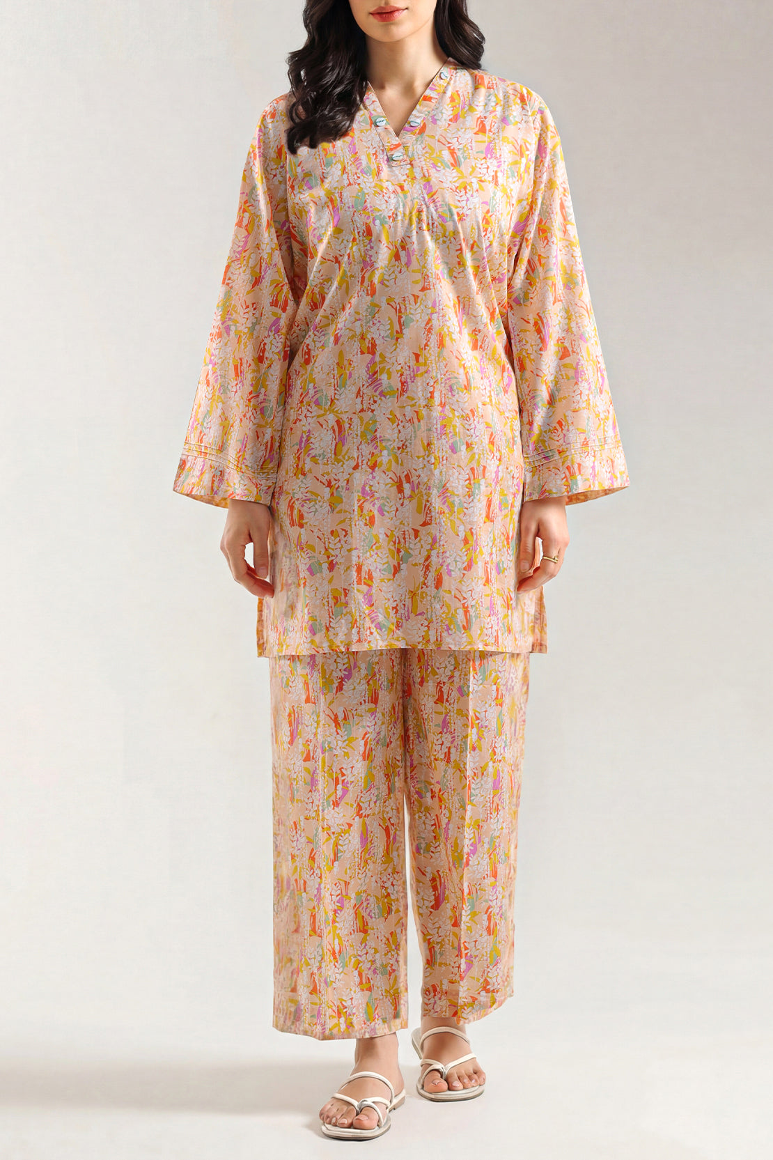 SAYA Printed Lawn Stitched 2-Piece Shirt & Trouser combines breathable lawn fabric with stylish all-over prints for a comfortable and chic everyday outfit. This ready-to-wear set includes a printed shirt paired with matching trousers that offer coordinated design and easy styling for daily wear. Ideal for casual outings, everyday use, and warm-weather looks, this 2-piece ensemble brings together contemporary appeal and practical comfort.