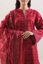 SAYA Printed Lawn Three-Piece Set In Red Featuring Premium Lawn Fabric With Vibrant Print That Exudes Bold Elegance. Ready-To-Wear Ensemble Includes Shirt, Dupatta And Dyed Trouser With Expert Stitching And Polished Finishing. Lightweight And Breathable, Perfect For Festive Gatherings, Evening Events Or Sophisticated Daytime Looks.