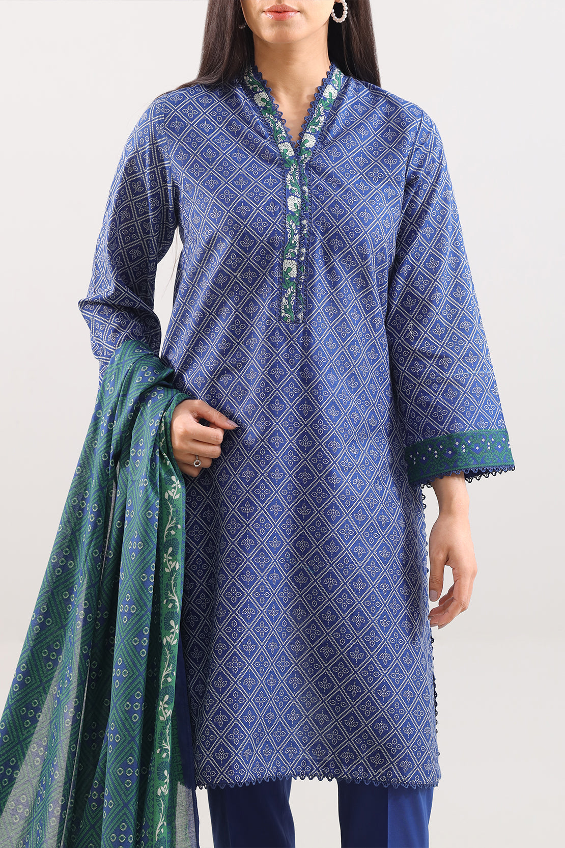 Elevate Your Summer Wardrobe With The SAYA Printed Lawn Stitched 3-Piece Set. Crafted From Lightweight Premium Lawn Fabric That Offers Breathable Comfort, This Ready-To-Wear Ensemble Includes A Tailored Printed Shirt, A Printed Dupatta, And A Dyed Trouser. Perfect For Daytime Gatherings, Casual Events Or Warm-Weather Elegance, It Seamlessly Blends Fabric Quality, Style And Wearability.