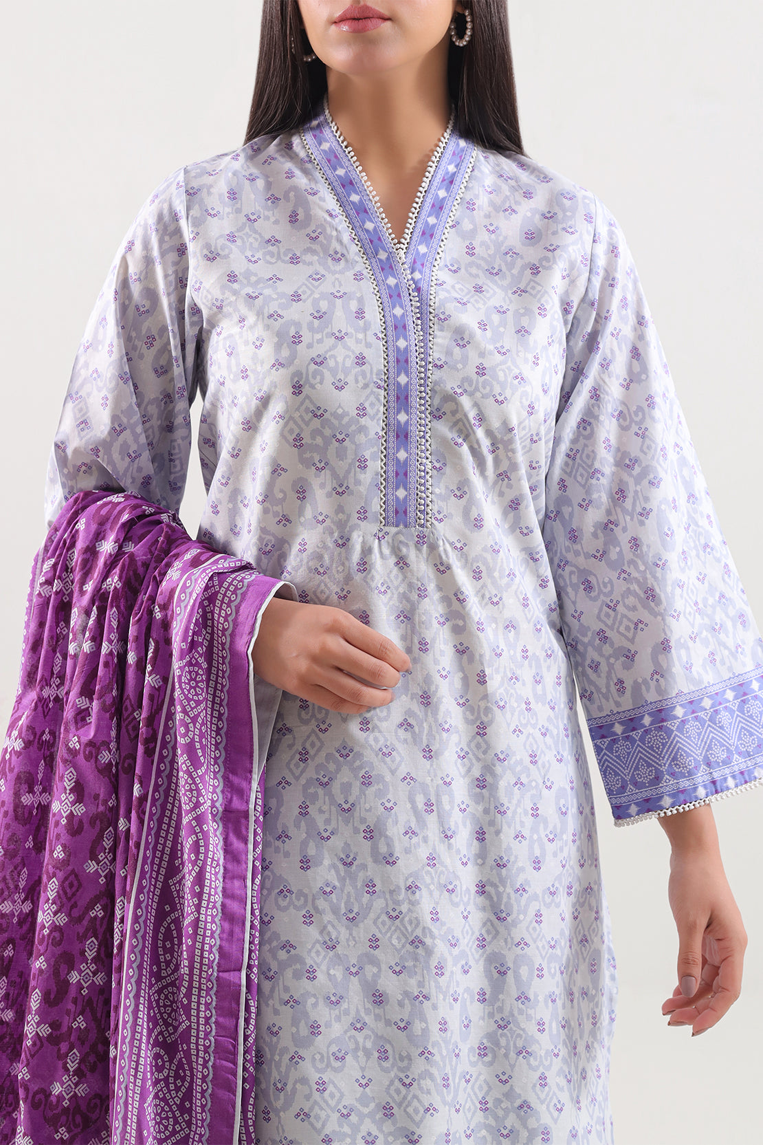 Printed Lawn Stitched 3-Piece By SAYA Is Made From Ultra-Lightweight, Breathable Lawn — Known For Its Delicate, Smooth Weave. The Set Includes A Ready-To-Wear Printed Shirt, A Dyed Trouser, And A Coordinated Printed Lawn Dupatta, Delivering An Airy, Polished Look — Ideal For Daytime Events, Summer Gatherings, Or Effortless Casual Elegance.