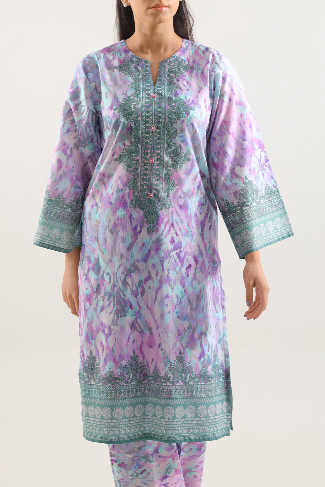 Printed Lawn Stitched Shirt By SAYA Is Crafted From Lightweight, High-Thread-Count Lawn, Offering A Silky, Breathable Fabric That Drapes Gracefully. The Shirt Features A Vibrant Print, Meticulous Stitching, And A Polished Design — Ideal For Chic Daywear Or Warm-Weather Elegance.