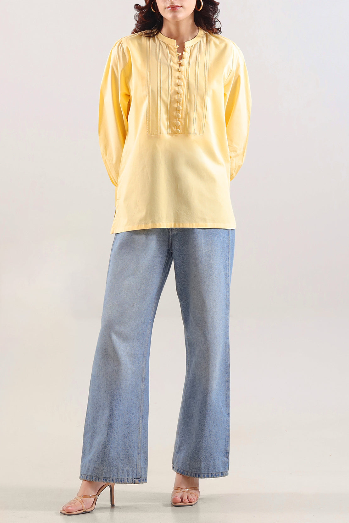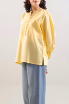 Revitalize your wardrobe with the SAYA Printed Poplin Stitched Shirt. Crafted from premium poplin fabric—renowned for its smooth texture and crisp finish—this ready-to-wear piece showcases a stylish all-over print on a fresh base tone. Ideal for casual meet-ups, daywear or layering under a blazer, it effortlessly blends fabric excellence, design finesse and everyday versatility.