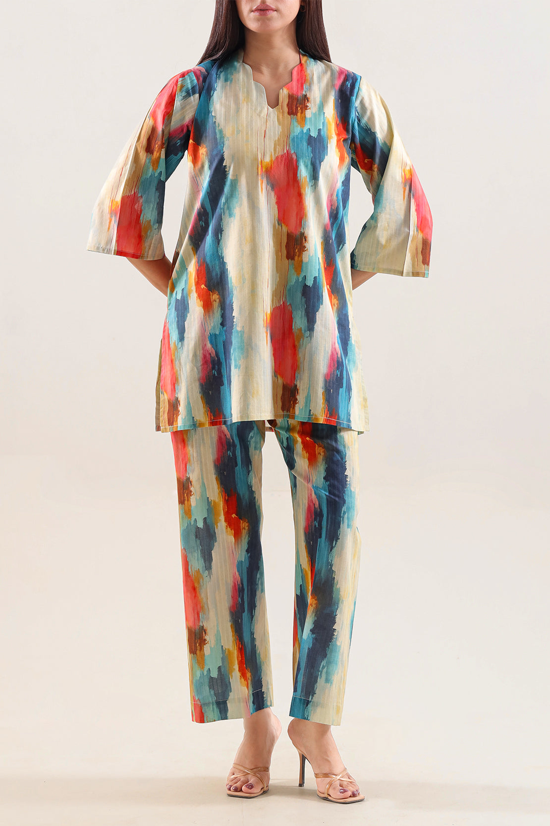 SAYA Printed Self-Stripe Lawn Stitched 2-Piece Shirt & Trouser Is Crafted From Ultra-Light, Breathable Cotton Lawn Featuring A Subtle Self-Stripe Pattern For A Refined Visual Texture. The Ready-To-Wear Shirt And Coordinated Trouser Deliver Soft Comfort, Elegant Flow, And Effortless Style — Ideal For Warm-Weather Casuals, Daytime Events, Or Smart-Casual Style.