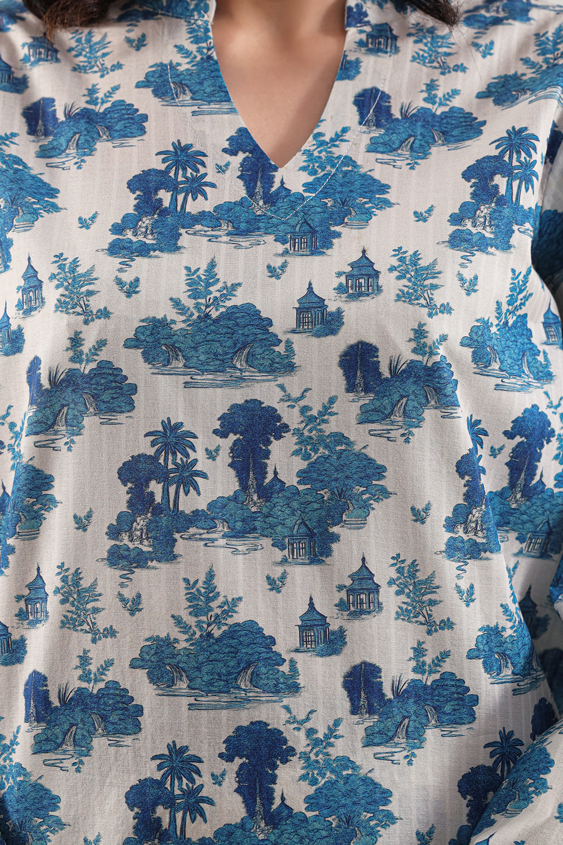Elevate Your Daytime Wardrobe With This Elegant Two-Piece Ensemble From SAYA, Crafted In Ultra-Lightweight Lawn Fabric That Offers Breathable Comfort And A Feather-Soft Hand. The Shirt Features A Refined Self-Stripe Print That Adds Visual Texture And Elongates The Silhouette, While The Ready-To-Wear Trouser Mirrors The Printed Motif For A Cohesive, Stylish Look. Ideal For Smart Casuals, Daytime Events Or Effortless Everyday Chic. This Set Blends Fabric Quality, Print Detail And Tailoring Precision Seamlessly.