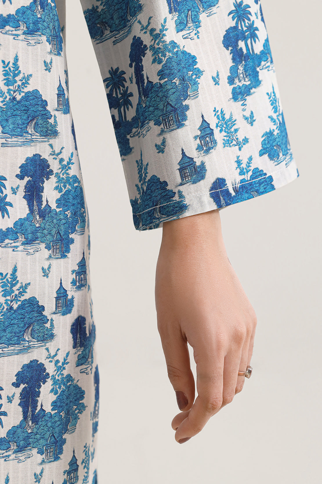 Printed Self Strip Lawn Stitched 2 Piece (Shirt/Trouser)