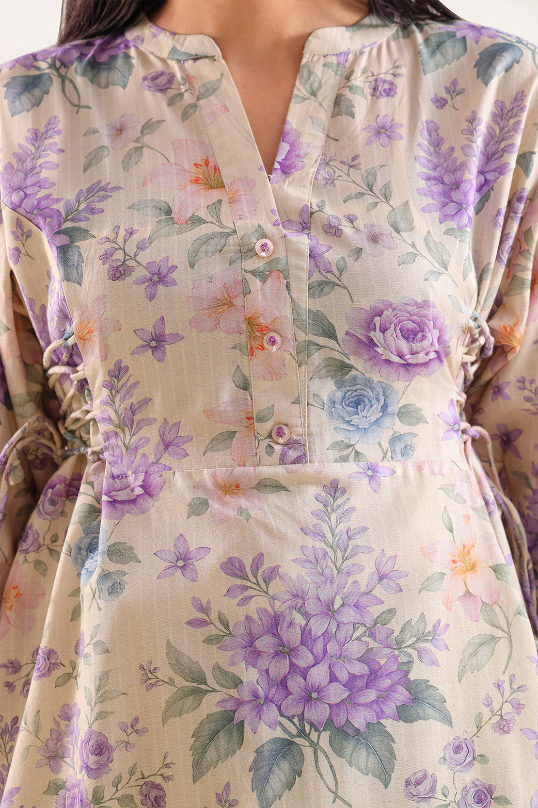 Ready To Wear Printed Self Strip Lawn Stitched Dress.