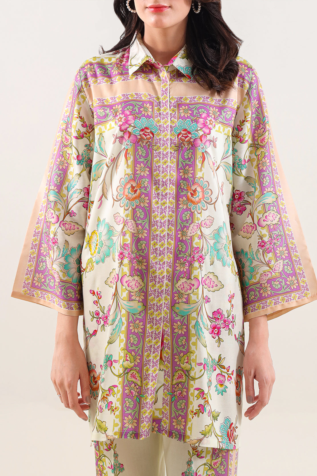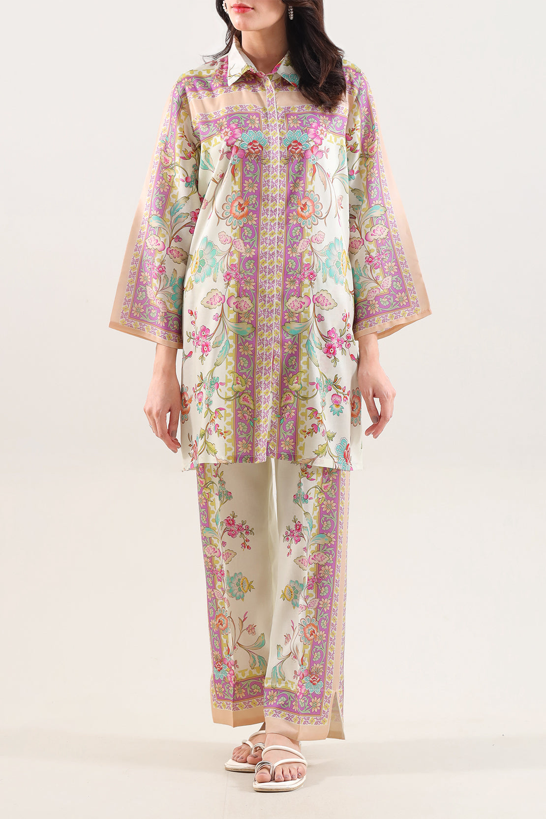 Embrace Sleek Comfort With The SAYA Printed Silk-Touch 2-Piece Shirt & Trouser — Designed With A Soft “Silk-Touch” Fabric That Feels Smooth And Silky Against The Skin. The Fabric Offers A Lightweight, Fluid Drape With A Subtle Sheen, Combining Breathability And Comfort For Everyday Or Semi-Formal Wear. The Shirt Boasts A Delicate Printed Pattern — Elegant Yet Modern — Finished With Clean Stitching And A Tailored Silhouette That Delivers A Polished Look. The Coordinating Trouser Features A Straight Cut With An Elastic Waistband, Ensuring Ease Of Wear, Flexibility, And Unrestricted Movement.