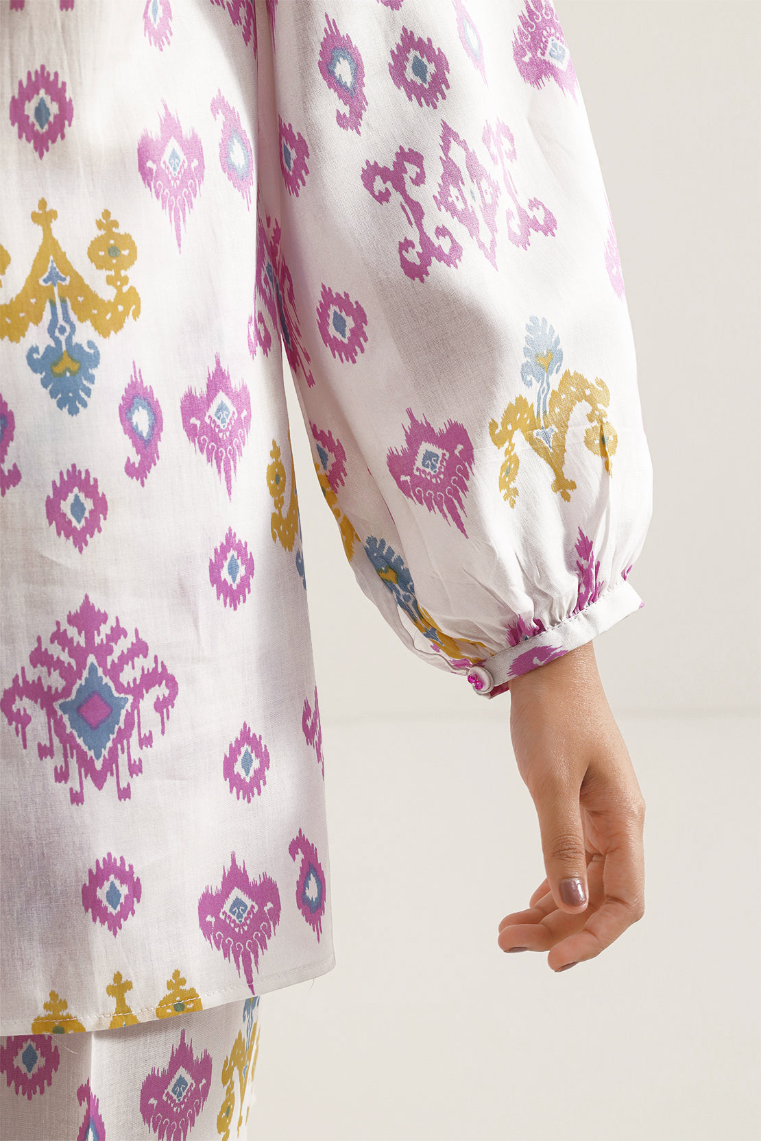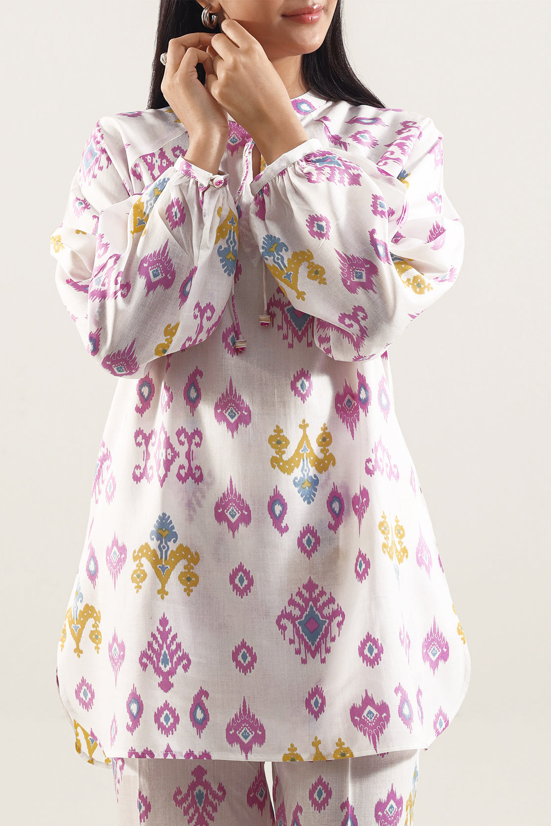 Indulge in Everyday Elegance with the SAYA Printed Silk Touch 2 Piece Set, crafted from silk-touch lyocell fabric that offers a soft drape, light sheen and excellent breathability. The shirt features a modern all over print on a deep base tone, enhanced by crisp tailoring and clean finishes. Paired with a coordinated trouser in the same refined fabric, the set delivers a seamless look that bridges daytime sophistication and casual ease. perfect for meetings, smart travel, or relaxed evenings out.