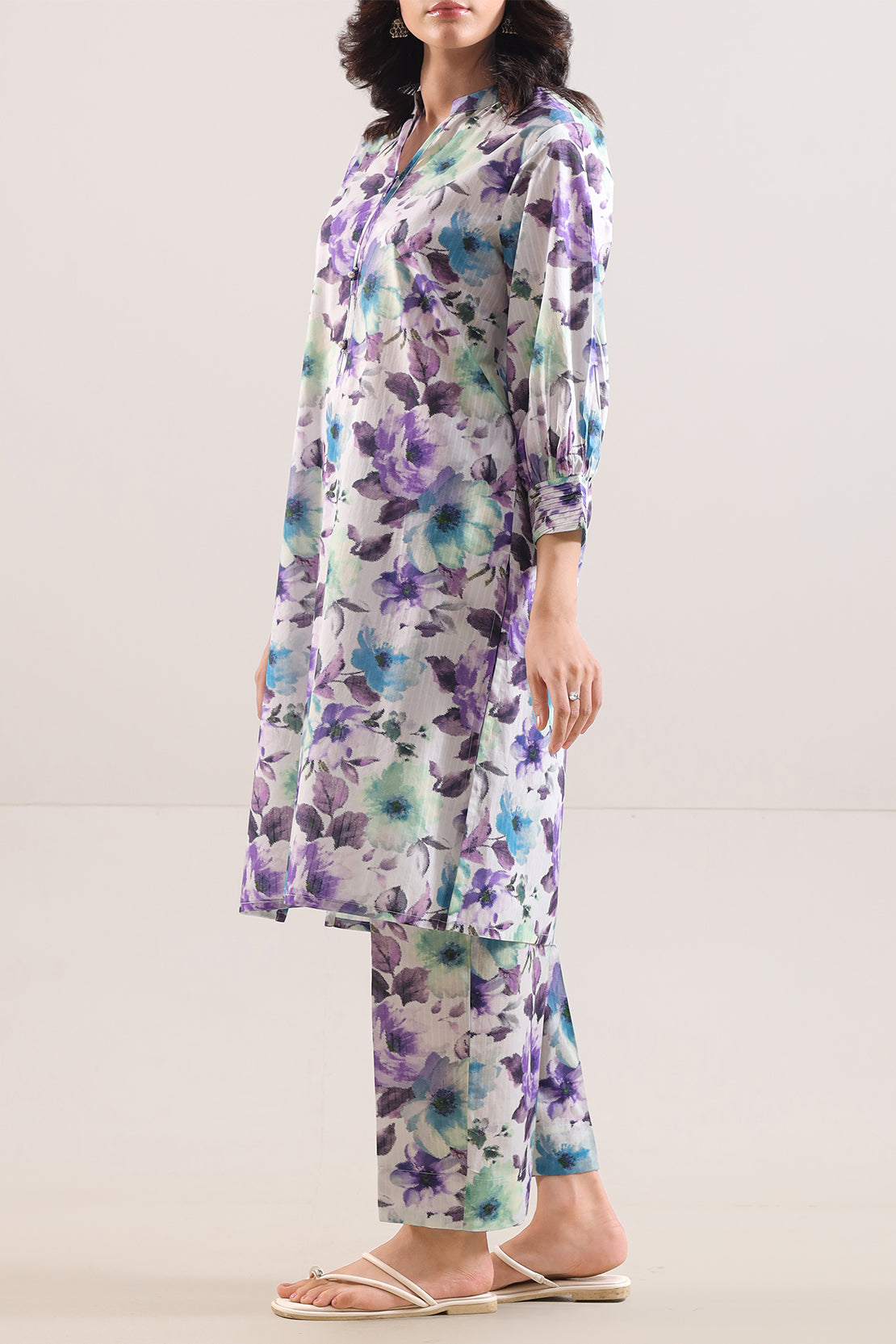 Immerse Yourself In The Subtle Elegance Of This Two-Piece From SAYA, Crafted In Breathable Lawn Fabric Featuring A Delicate Printed Strip Pattern. The Shirt Offers A Ready-To-Wear Stitched Design With A Refined Texture That Captures Daytime Grace And Evening Poise Alike. The Coordinated Trouser Echoes The Same Premium Fabric And Tailoring, Delivering A Seamless Ensemble Ideal For Festive Gatherings Or Casual Luxe Moments. With Its Harmonious Design, High-Quality Stitching And Comfortable Fabric, This Set Effortlessly Balances Utility And Fashion With Grace.