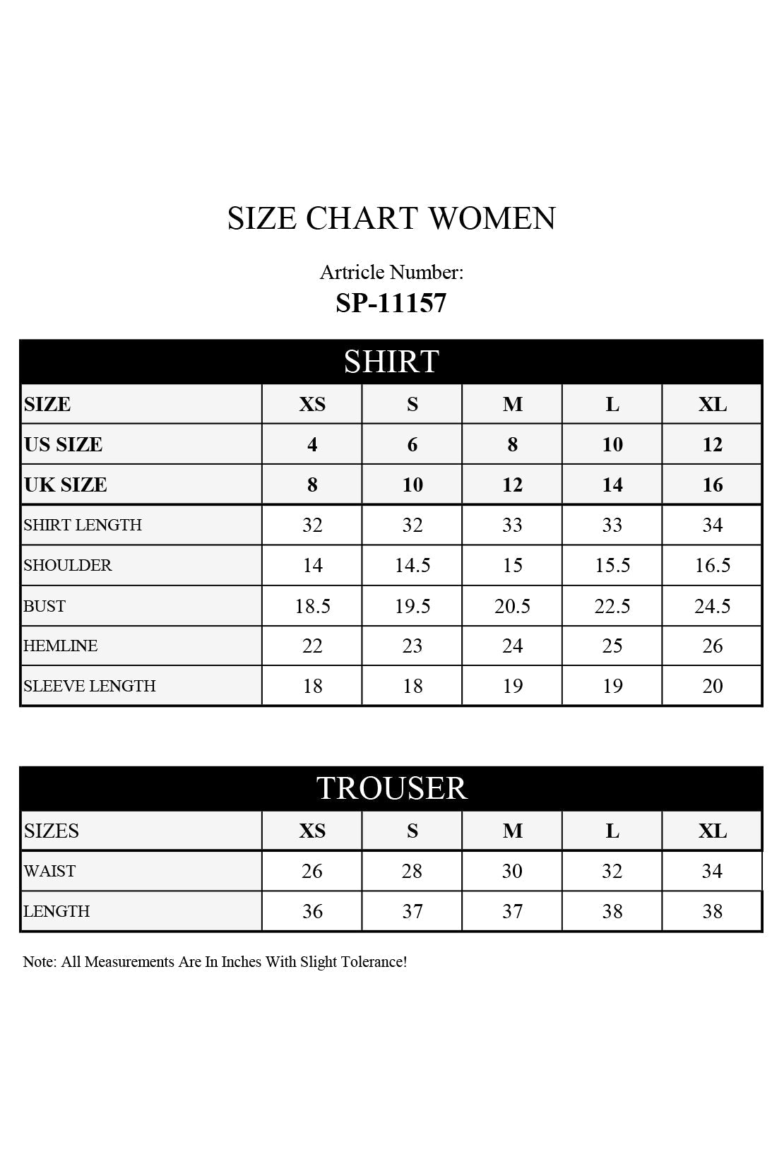 | Shirt Length | 0.5 | 44 | 44 | 45 | 45 | 46 |