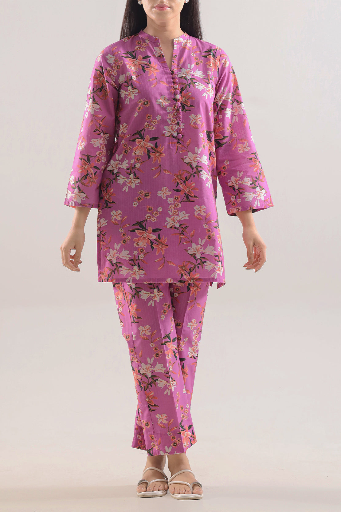 Printed Strip Lawn Stitched 2-Piece By SAYA Flaunts A Soft Pink Tone With Vertical Stripe Motifs. Crafted In Lightweight, Breathable Lawn Fabric, It Offers Ready-To-Wear Comfort With Elegant Flair. The Shirt Features Clean Stitching, A Neat Collar, And Tailored Lines, While The Coordinated Trouser Provides Balanced Structure. Ideal For Daytime Outings, Casual Gatherings, Or Warm Weather Style That Prioritizes Ease With Subtle Sophistication.