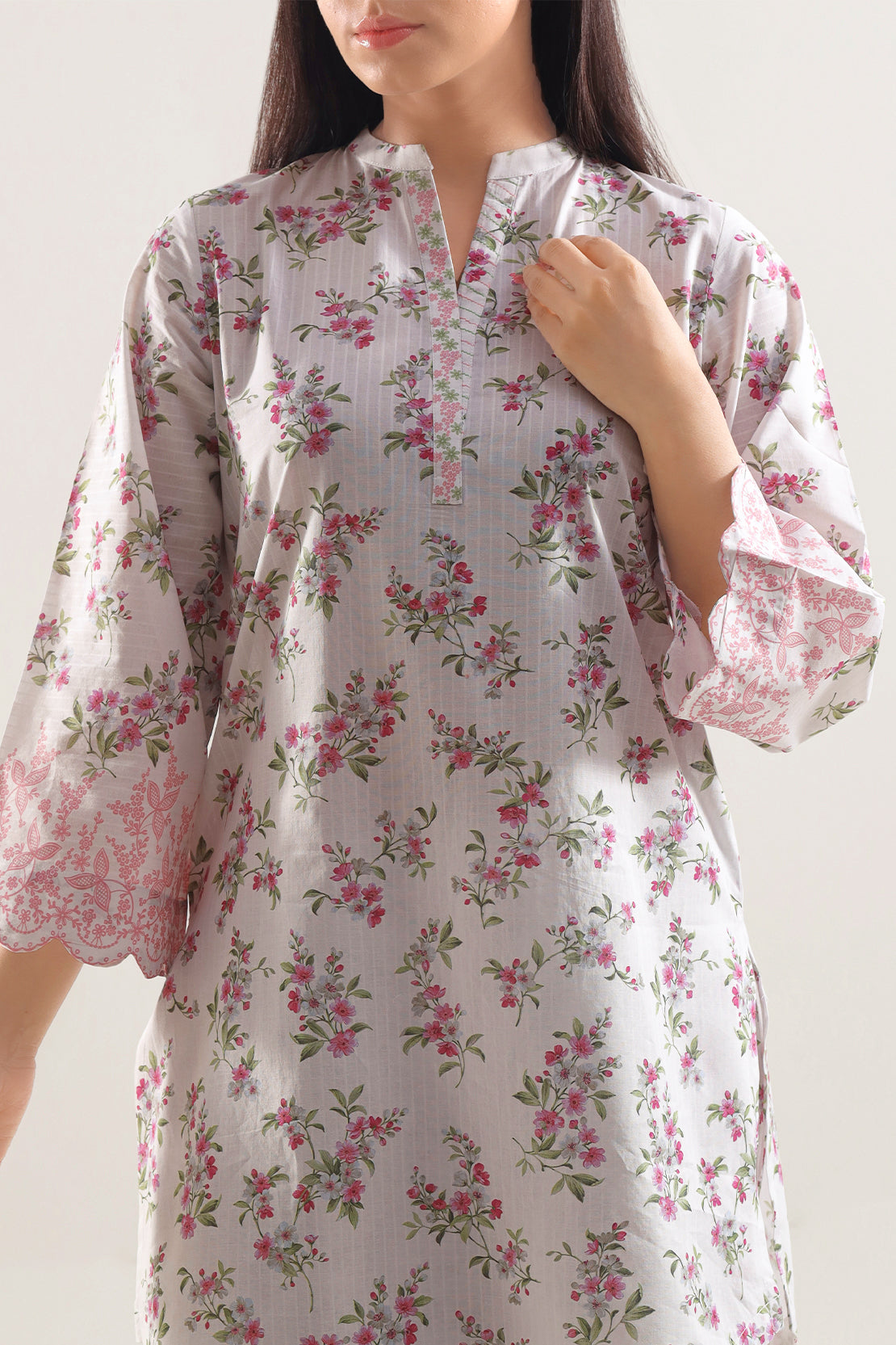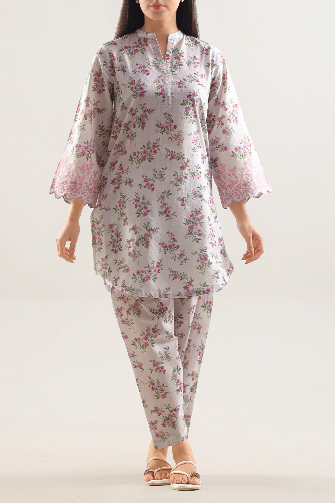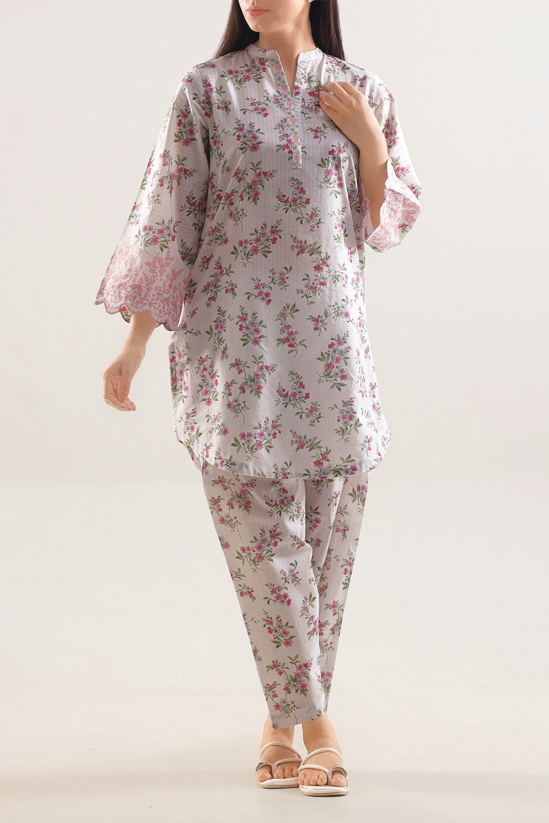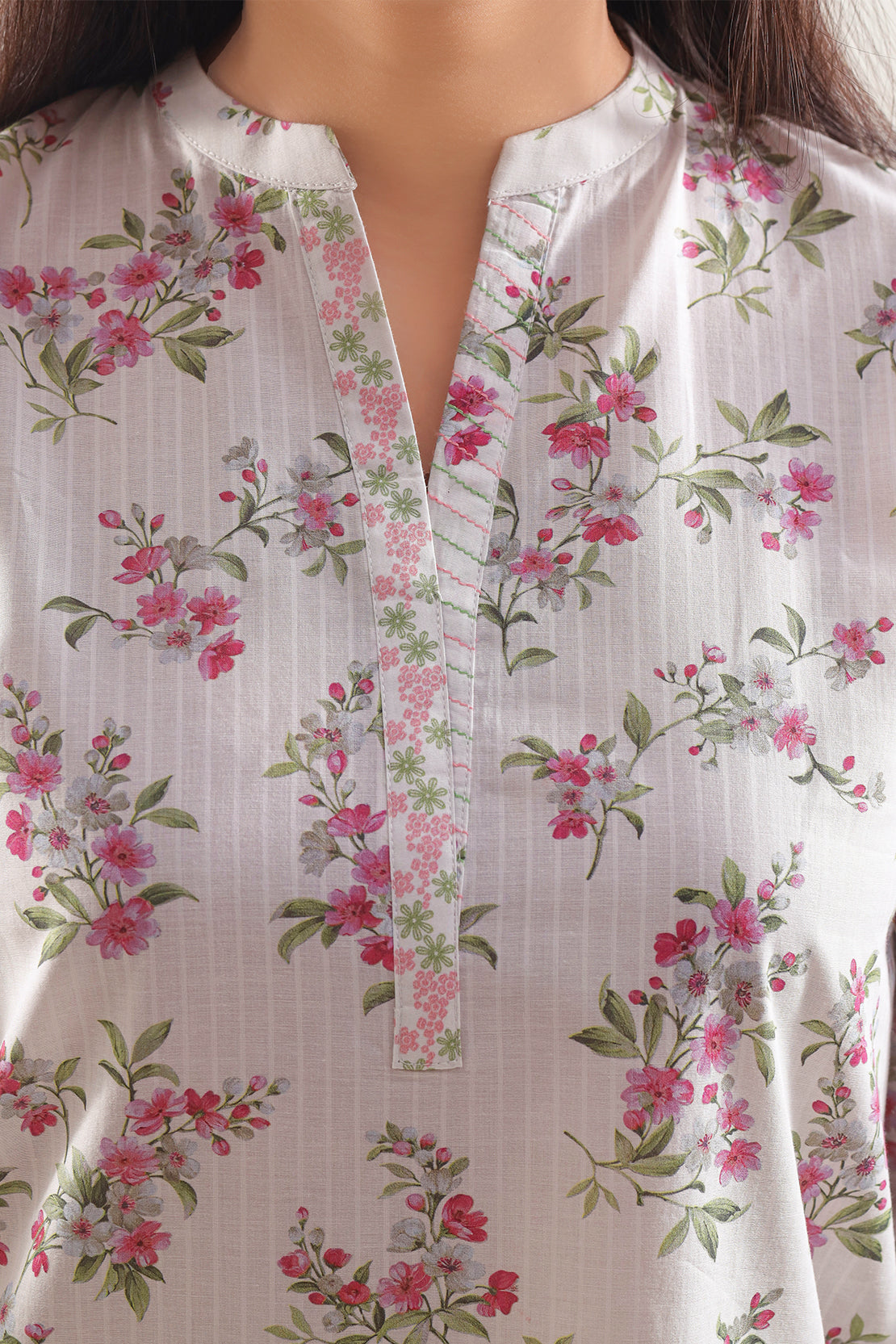 Elevate your wardrobe with the SAYA Printed Strip Lawn 2 Piece Set, crafted from strip lawn fabric that offers breathable comfort and a cool feel. The shirt features a clean white base adorned with refined vertical stripe prints, giving the vision of simplicity a chic update. Accompanied by a matching trouser in the same fabric and tone, it ensures cohesive styling from top to bottom. Ready to wear and tailored for ease, this set is perfect for daytime events, casual lunches or smart everyday wear.