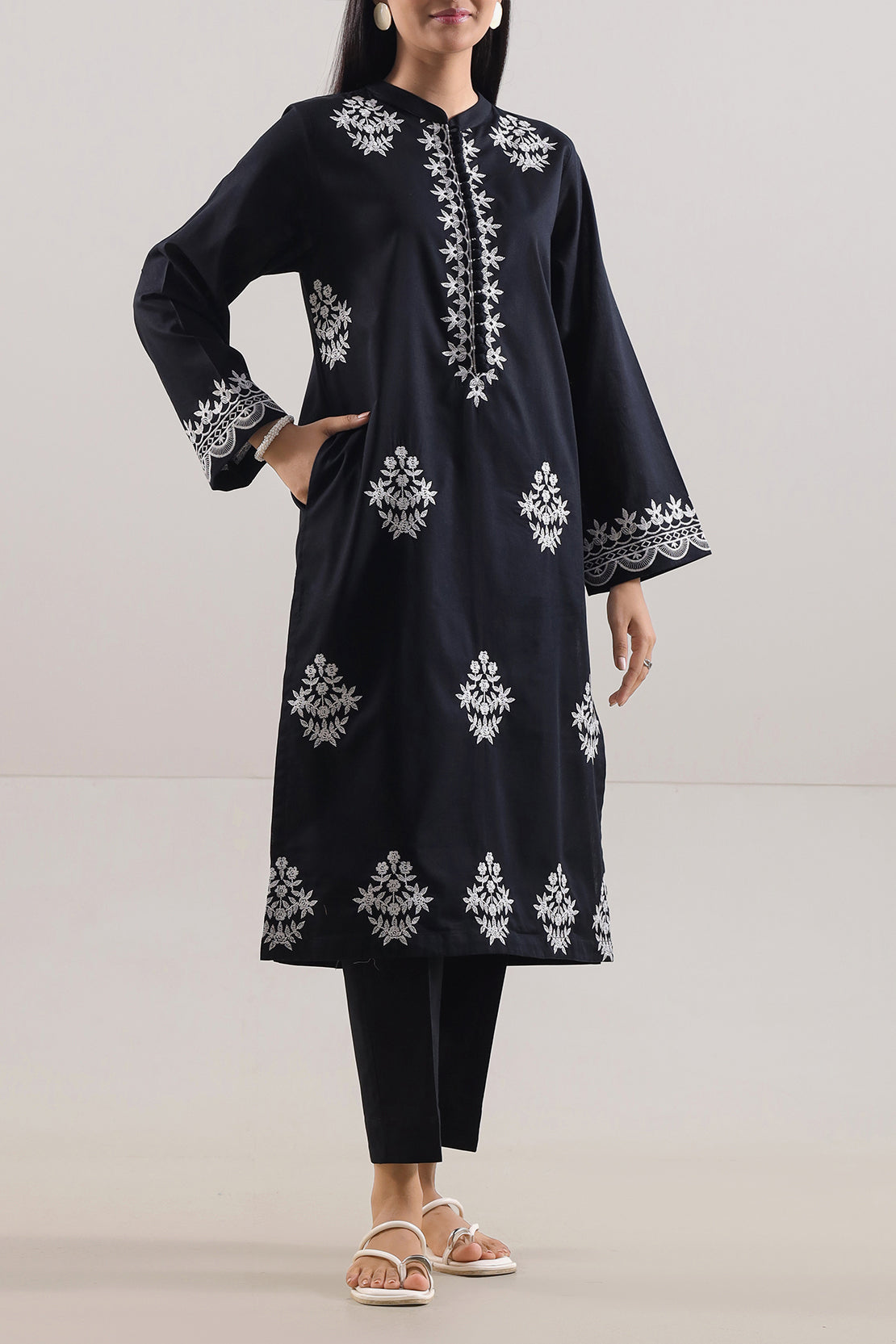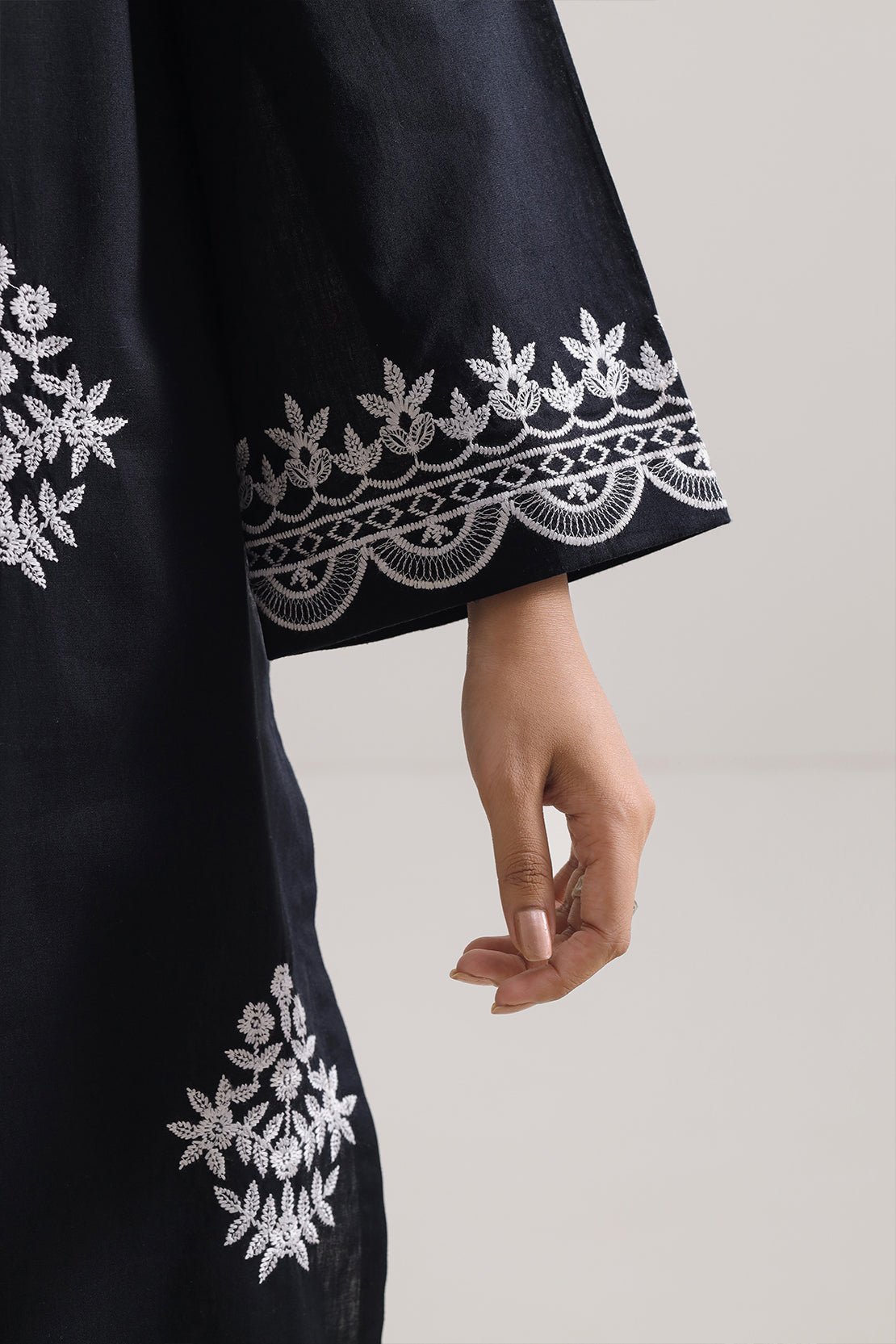 Solid Embroidered Cambric Stitched 2-Piece By SAYA features a sophisticated Black hue. The shirt is crafted from rich cambric fabric with a subtle tone-on-tone embroidery that adds refined detail without overpowering. Paired with a matching ready-to-wear trouser in the same fabric and color tone, this set offers effortless elegance, comfort, and a polished look—perfect for semi-formal daywear or office wear.