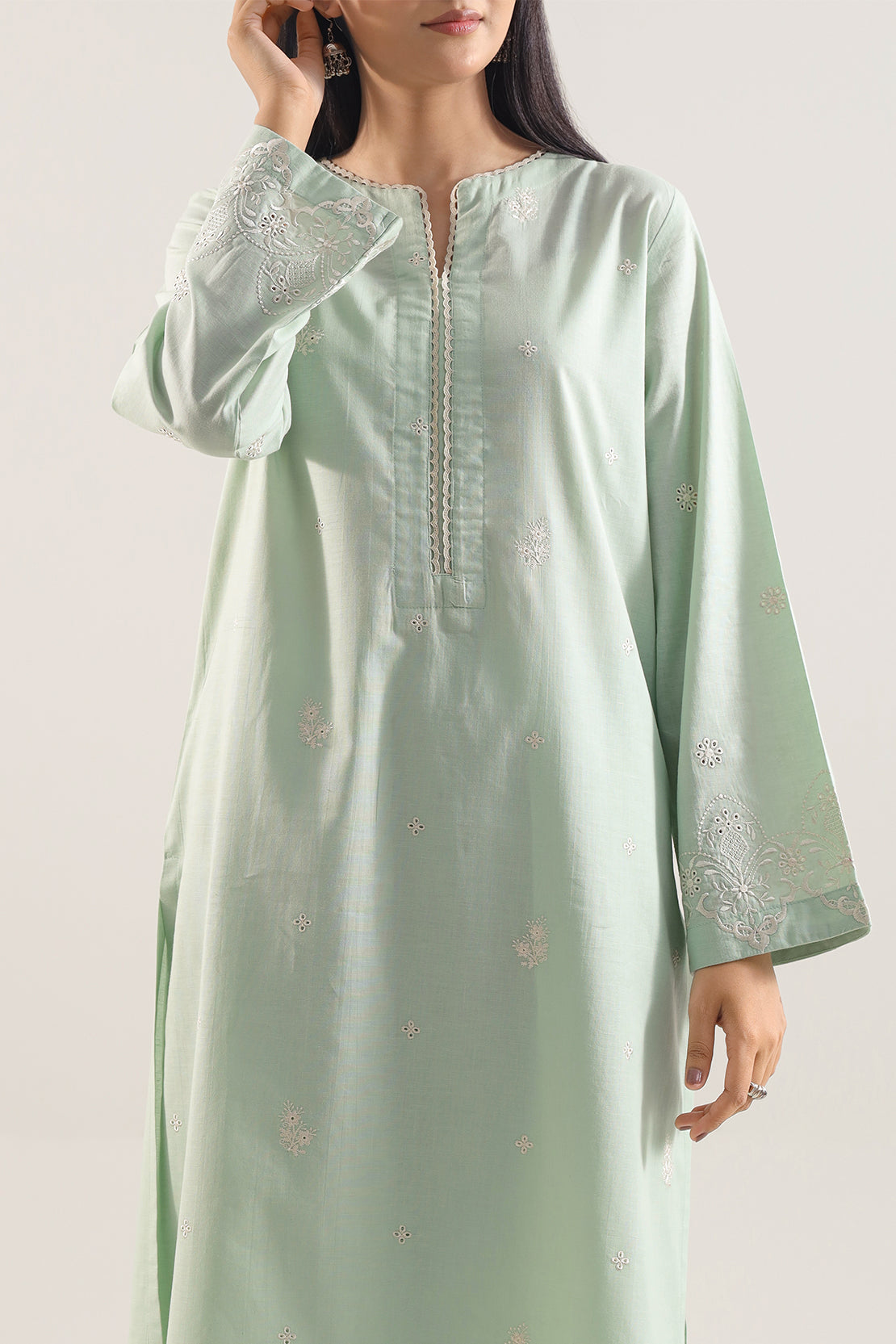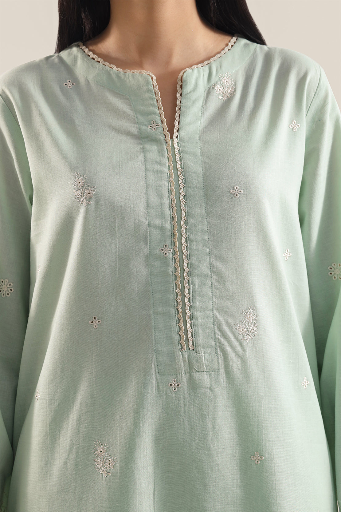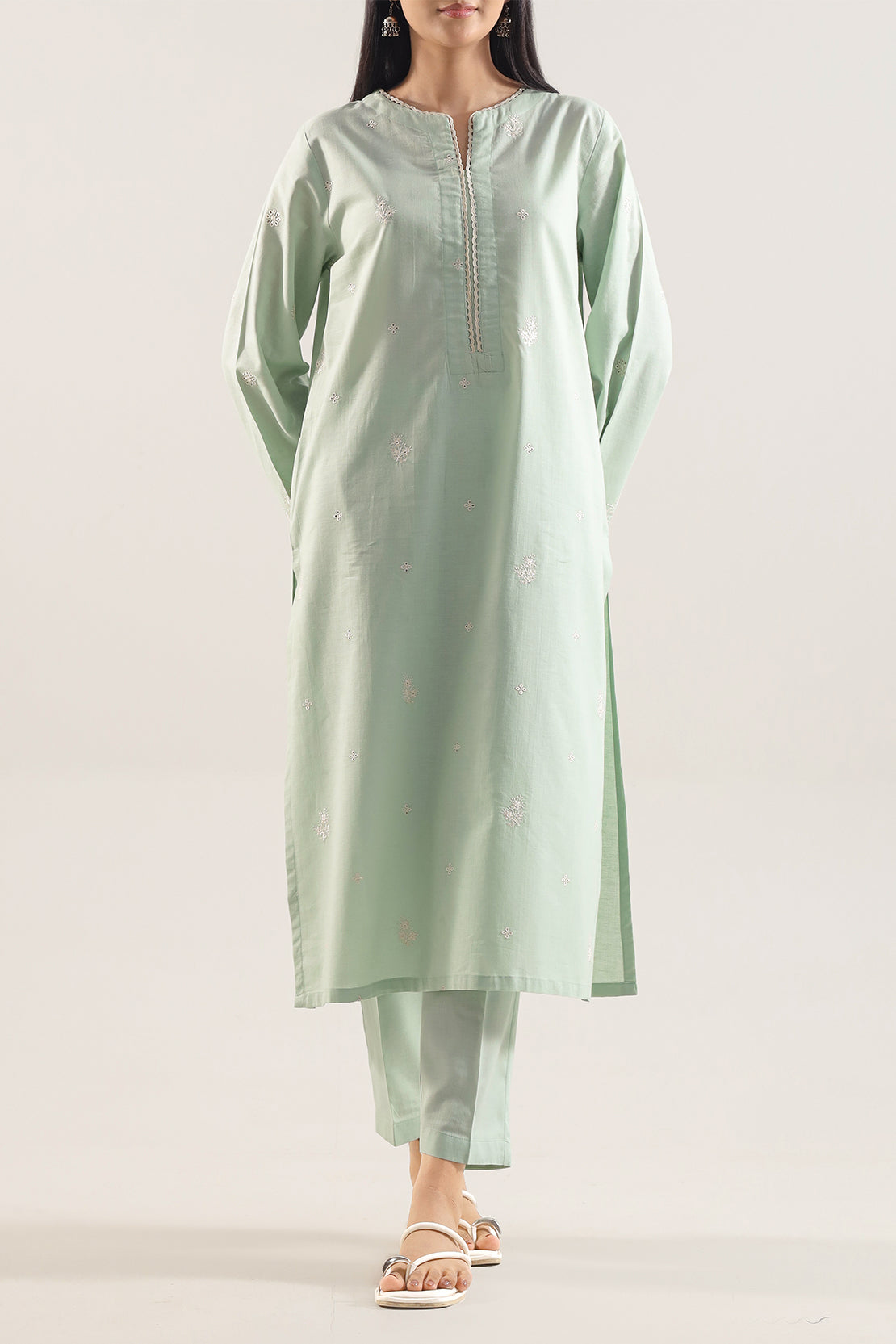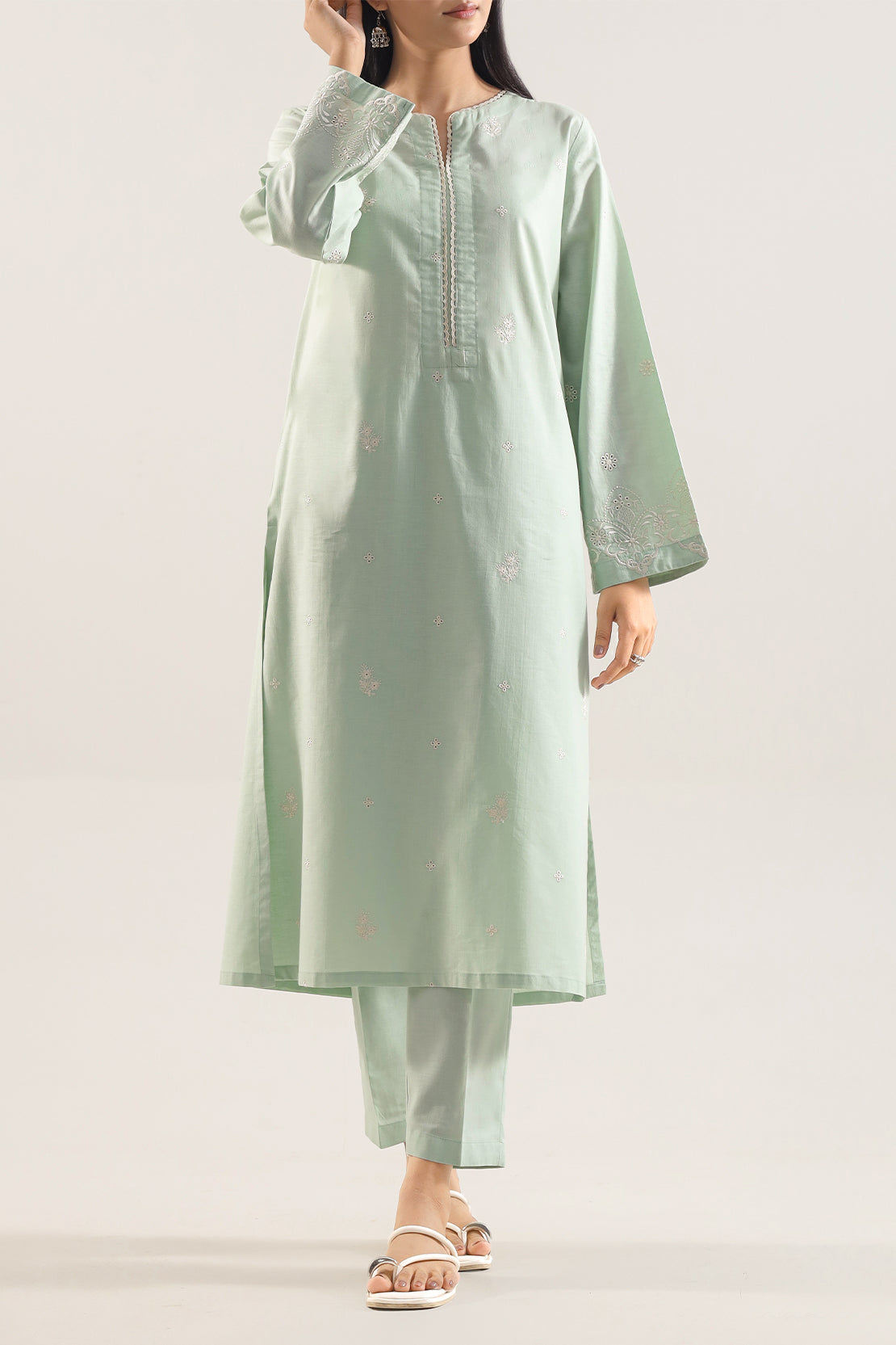Solid Embroidered Cotton Stitched 2 Piece (Shirt/Trouser)